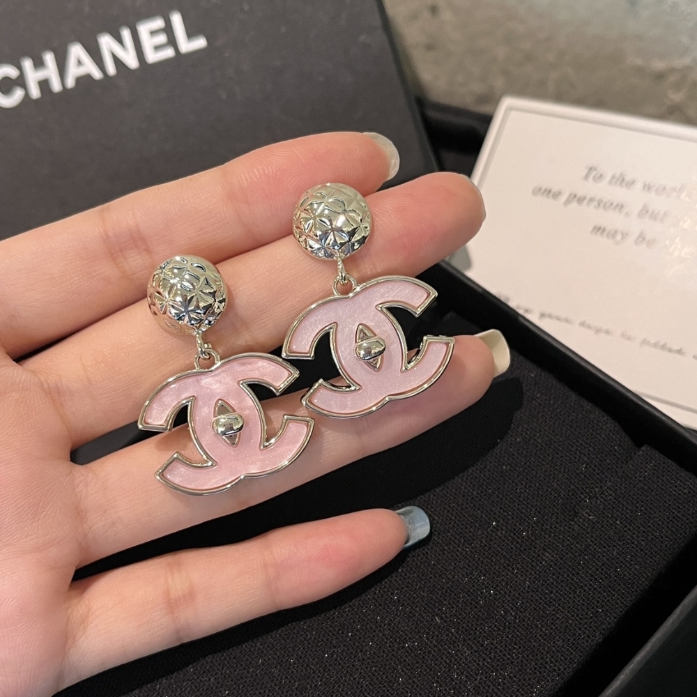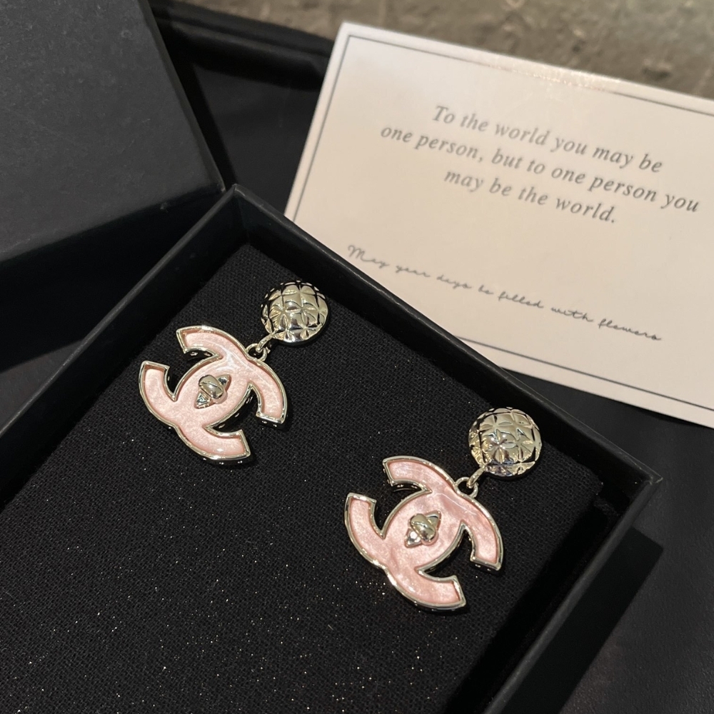 Chanel Large Enamel Cc Dangle Earrings Light Pink