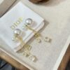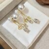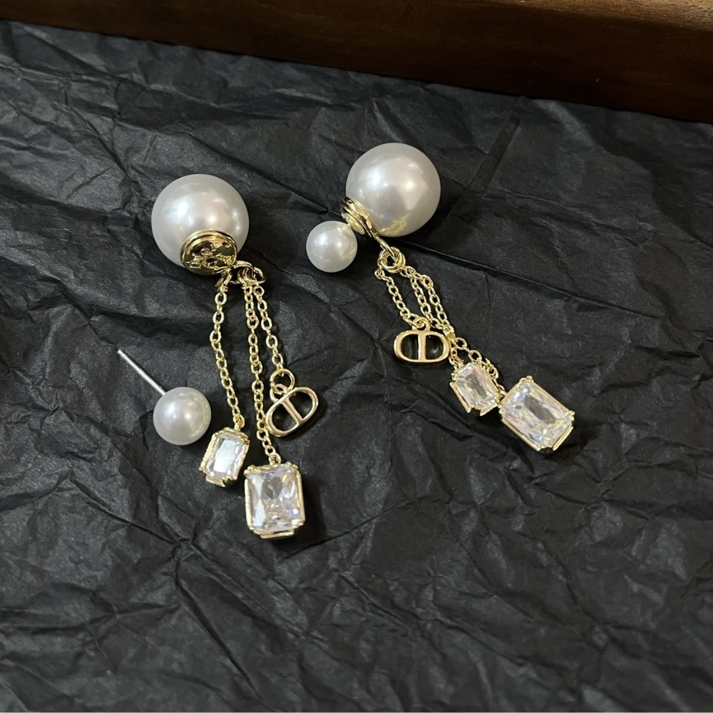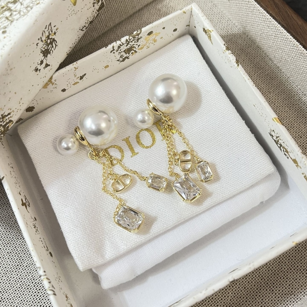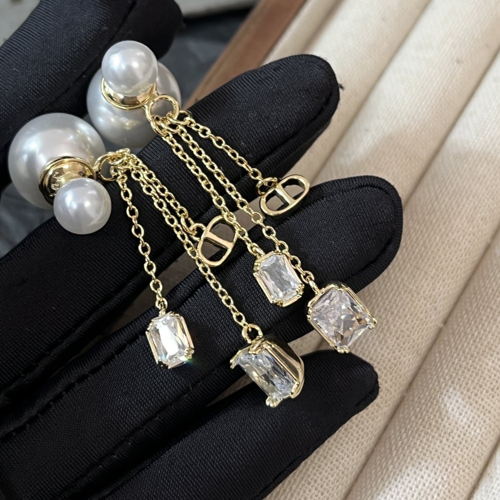 DIOR TRIBALES EARRINGS GOLD FINISH METAL WITH WHITE RESIN PEARLS AND SILVER TONE CRYSTALS