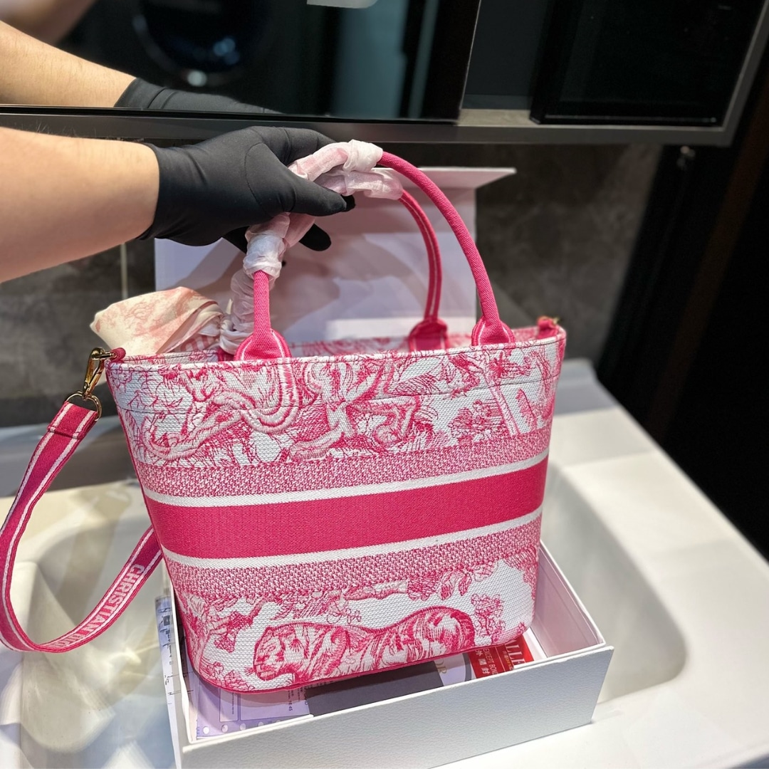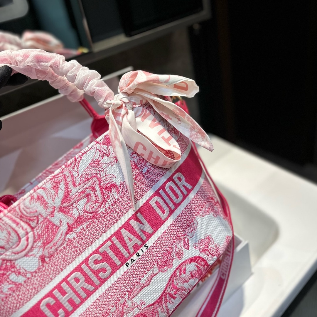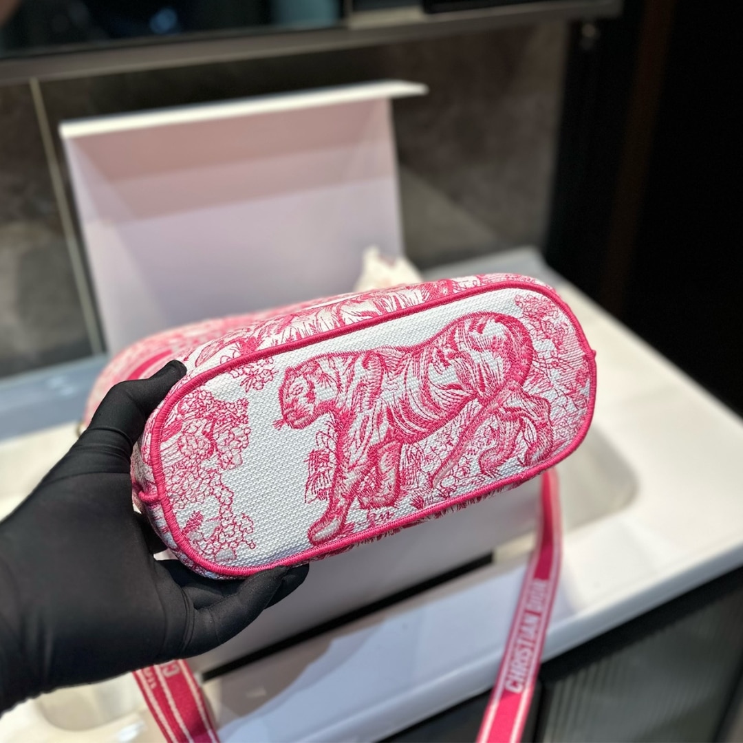 DIOR DIORIVIERA HAT BASKET BAG TOILE DE JOUY EMBROIDERY CANDY PINK 26CM M1328CTDT M03I