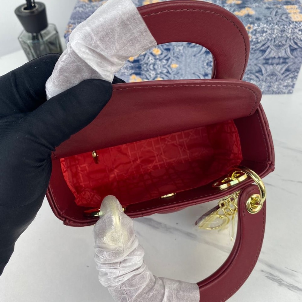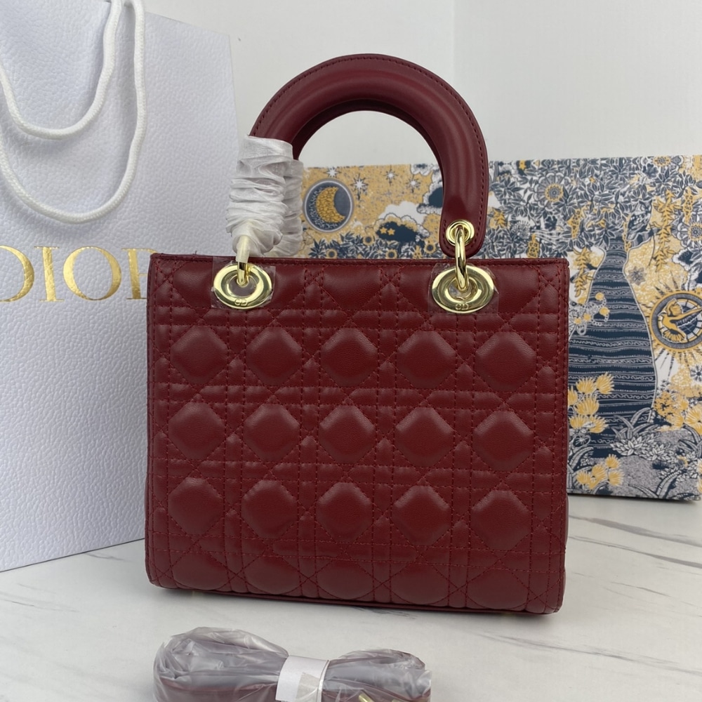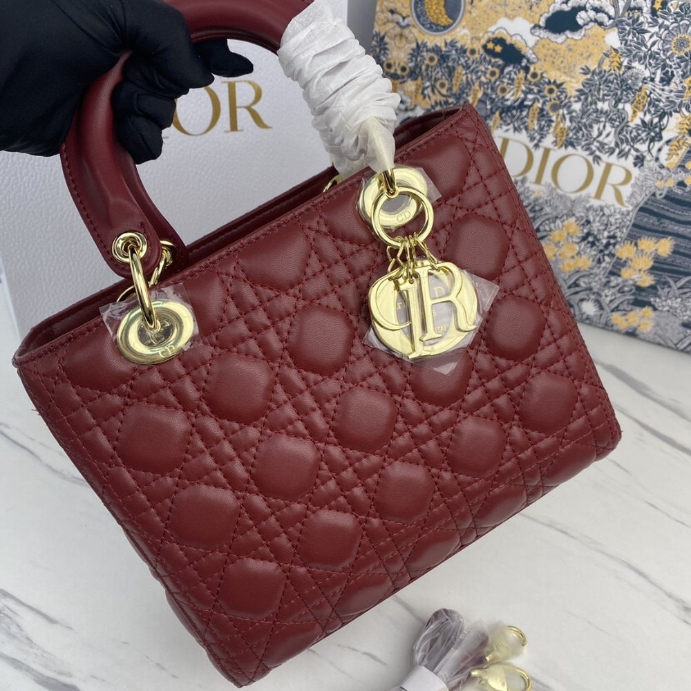 DIOR MEDIUM LADY CHERRY RED PATENT CANNAGE M0565OWCB M323 24CM
