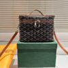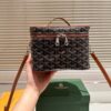 - Removable mirror, sliding elastic support straps for bottles, inside pocket that fastens with a leather tab and stud