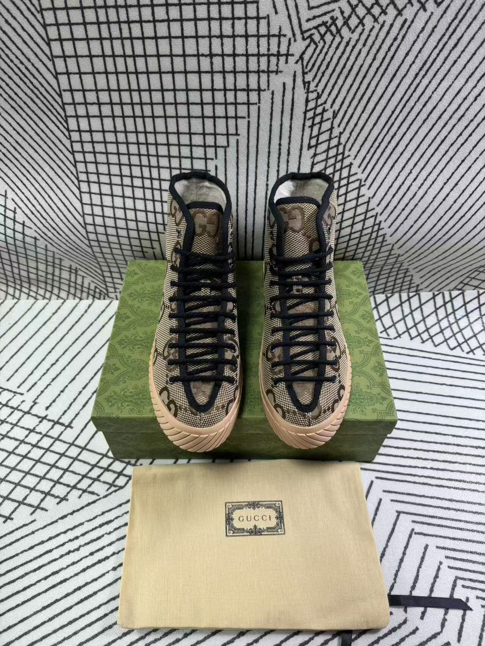 GUCCI ALL OVER GG LOGO HIGH TOP SNEAKER BROWN