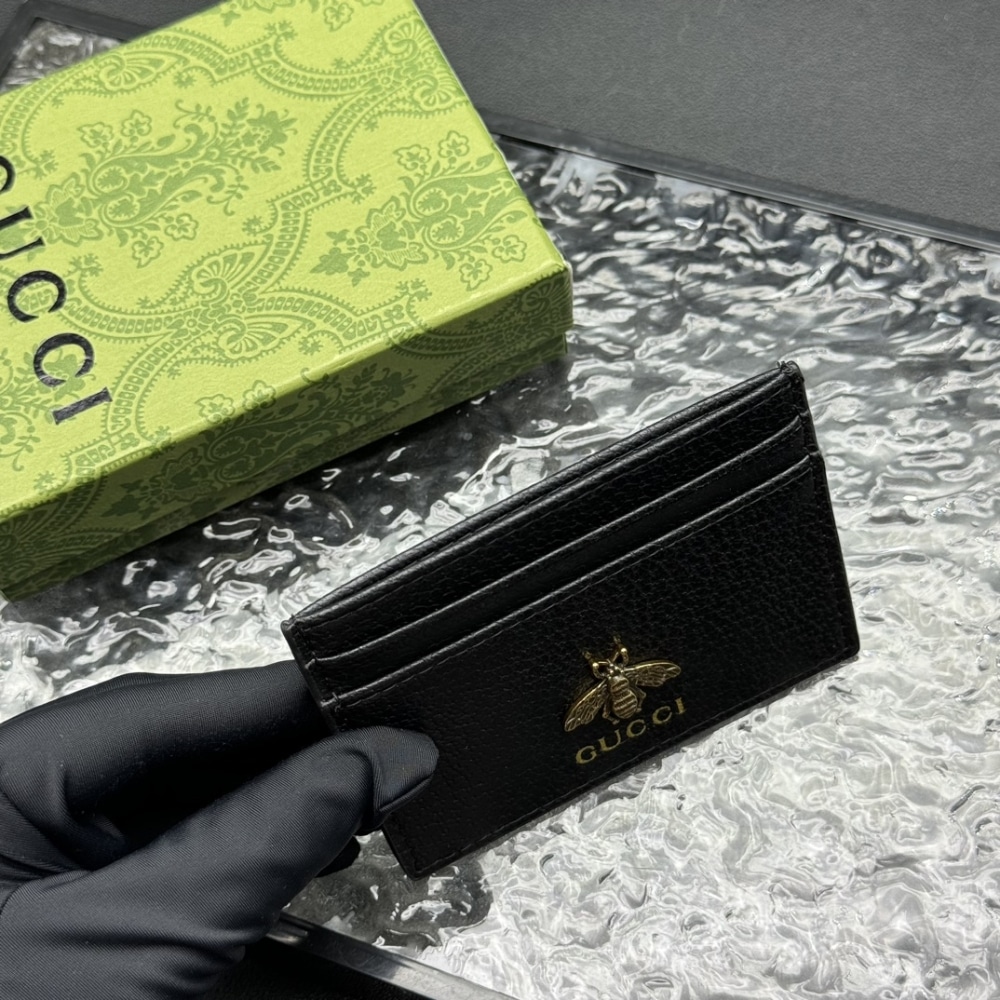 GUCCI ANIMALIER LEATHER CARD CASE BLACK 10CM 523685 DJ20T 1000