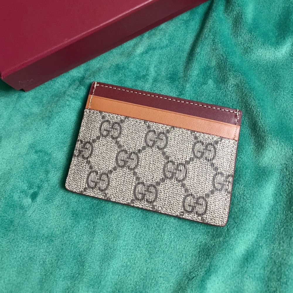 Gucci Bi-Color Gg Card Case With Dog Detail Beige And Dark Brown 11 cm / 4.3 inches