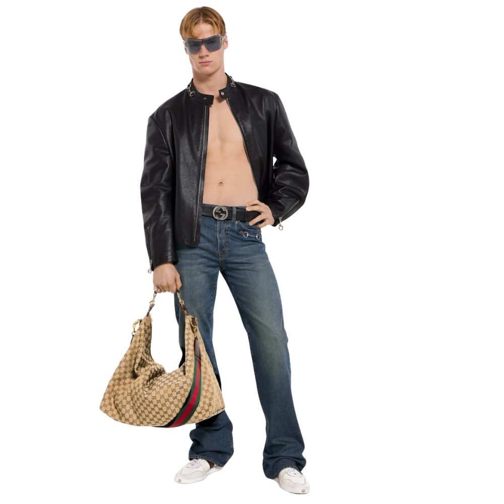 Gucci Brera Large Crossbody Bag Sand And Dark Brown GG Canvas 48Cm 864485 FAFV9 9653