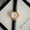 Gucci Diamantissima Steel Watch With Black Leather Strap