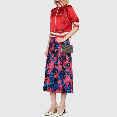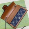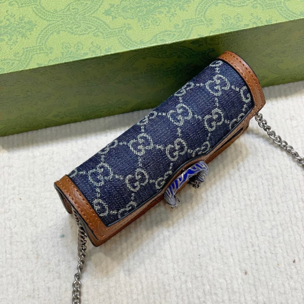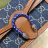 A part of the Epilogue collection, the super mini Dionysus is presented with a strong logo feel in GG washed organic jacquard. Continuing to frame House codes in new ways, the bag’s emblematic tiger head closure is enriched with vibrant blue enamel which complements the denim’s dark shade. The style is completed by a contrasting leather trim.