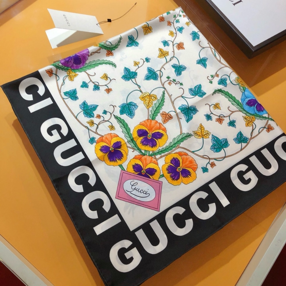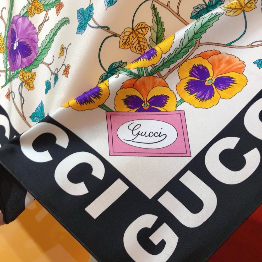 Gucci Floral Print Silk Scarf In Ivory In Black And White 7438763G0019260
