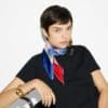 Gucci Floral Print Silk Square Scarf In Blue And Red