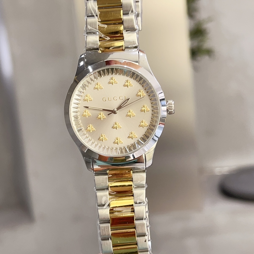 A silver sunbrushed dial and sapphire glass with an anti-reflective coating.