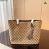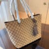 Gucci Gg Canvas Fringe Bamboo Tote Bag Beige Brown 31Cm