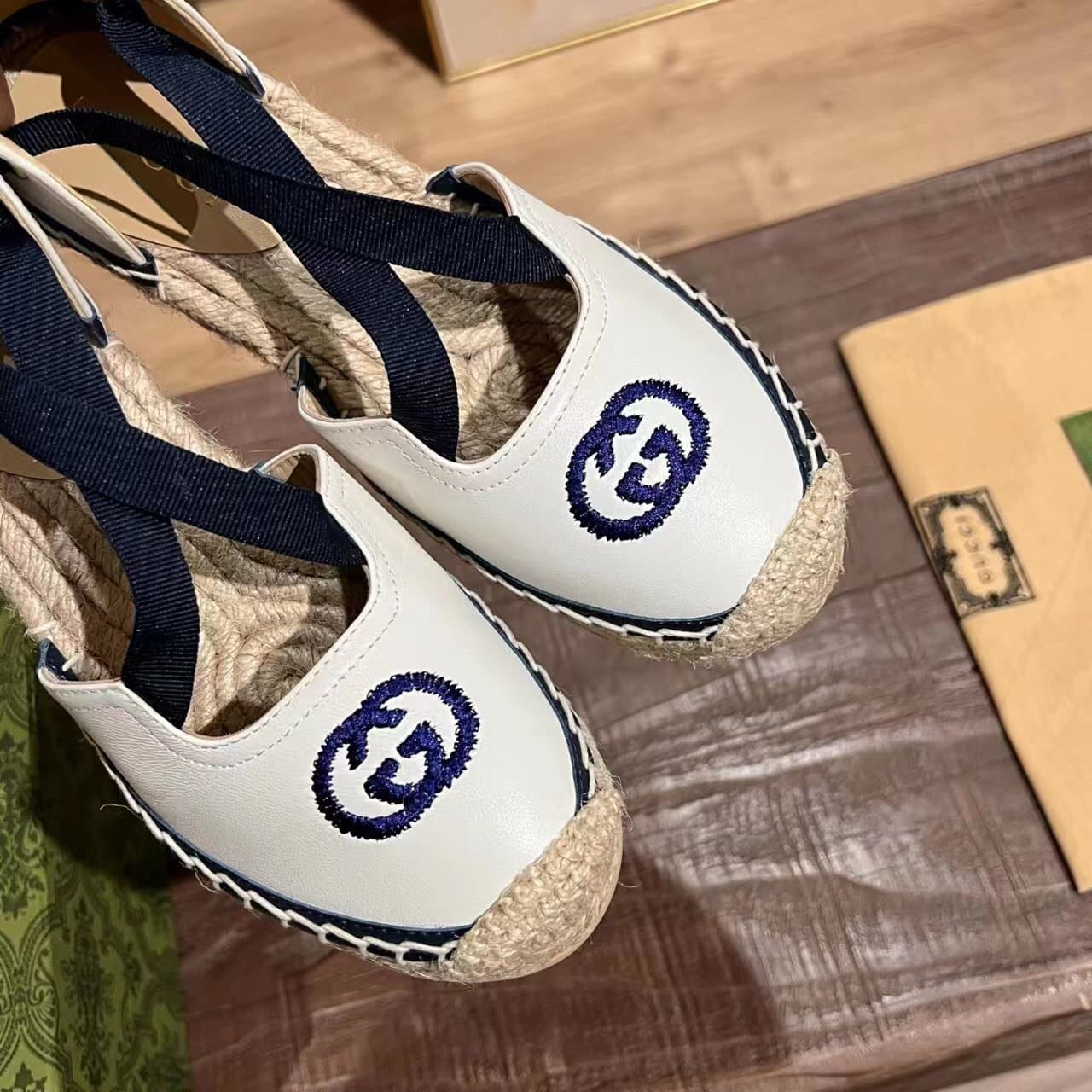 GUCCI GG CANVAS WEDGE ESPADRILLES WHITE