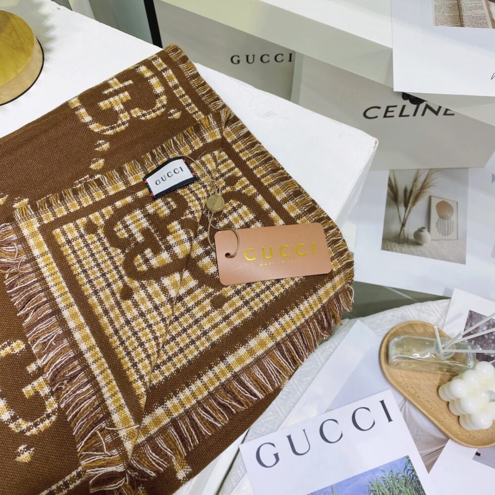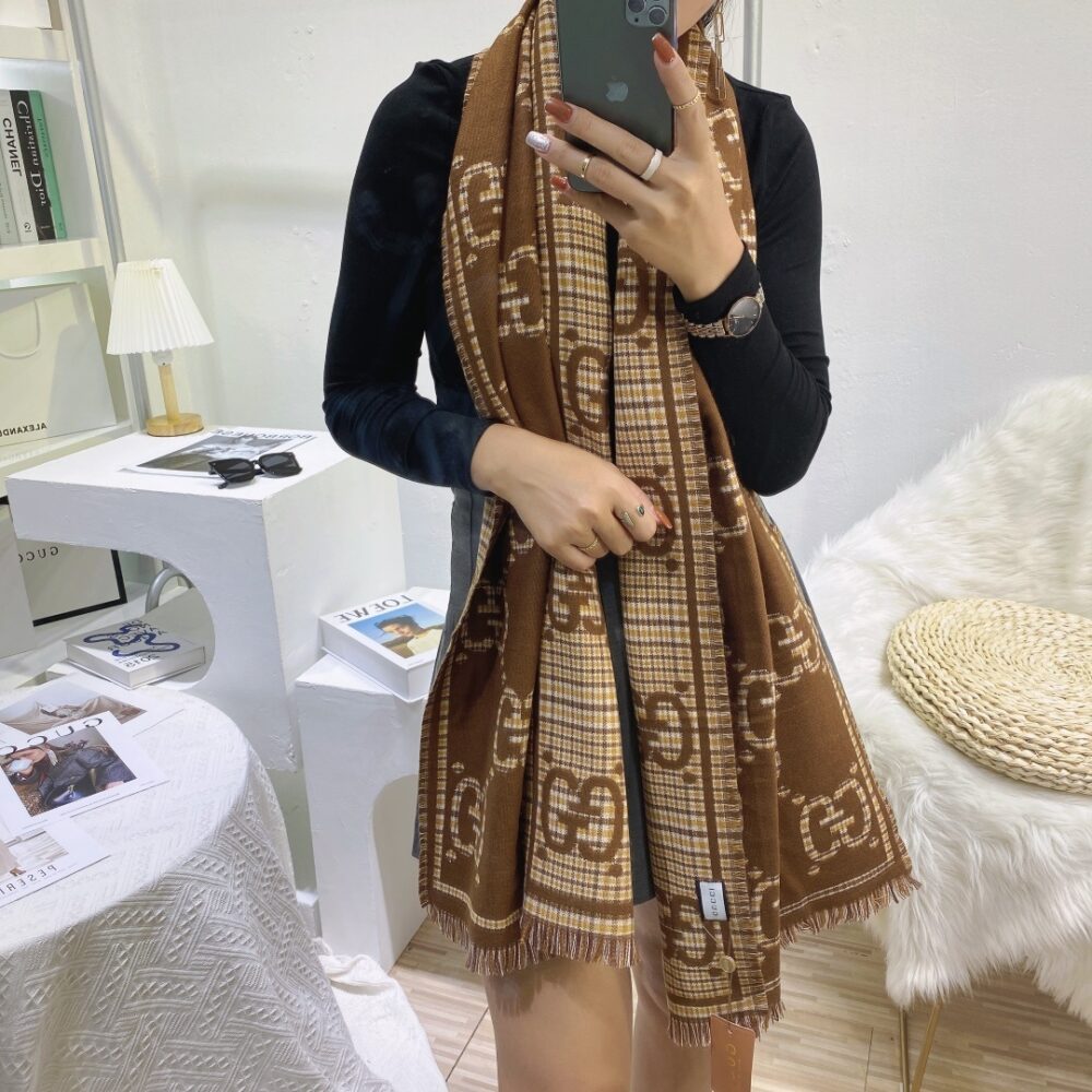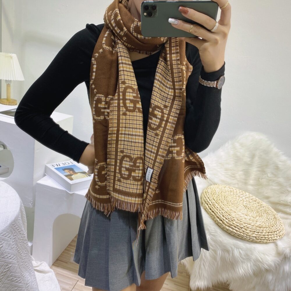Gucci Check GG Wool Jacquard Scarf Brown / 70.9 x 25.6 inches / Cozy Scarf / Elegant Style