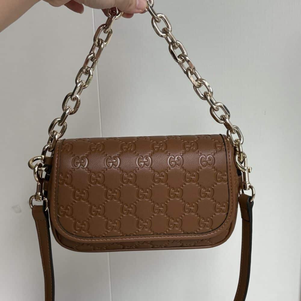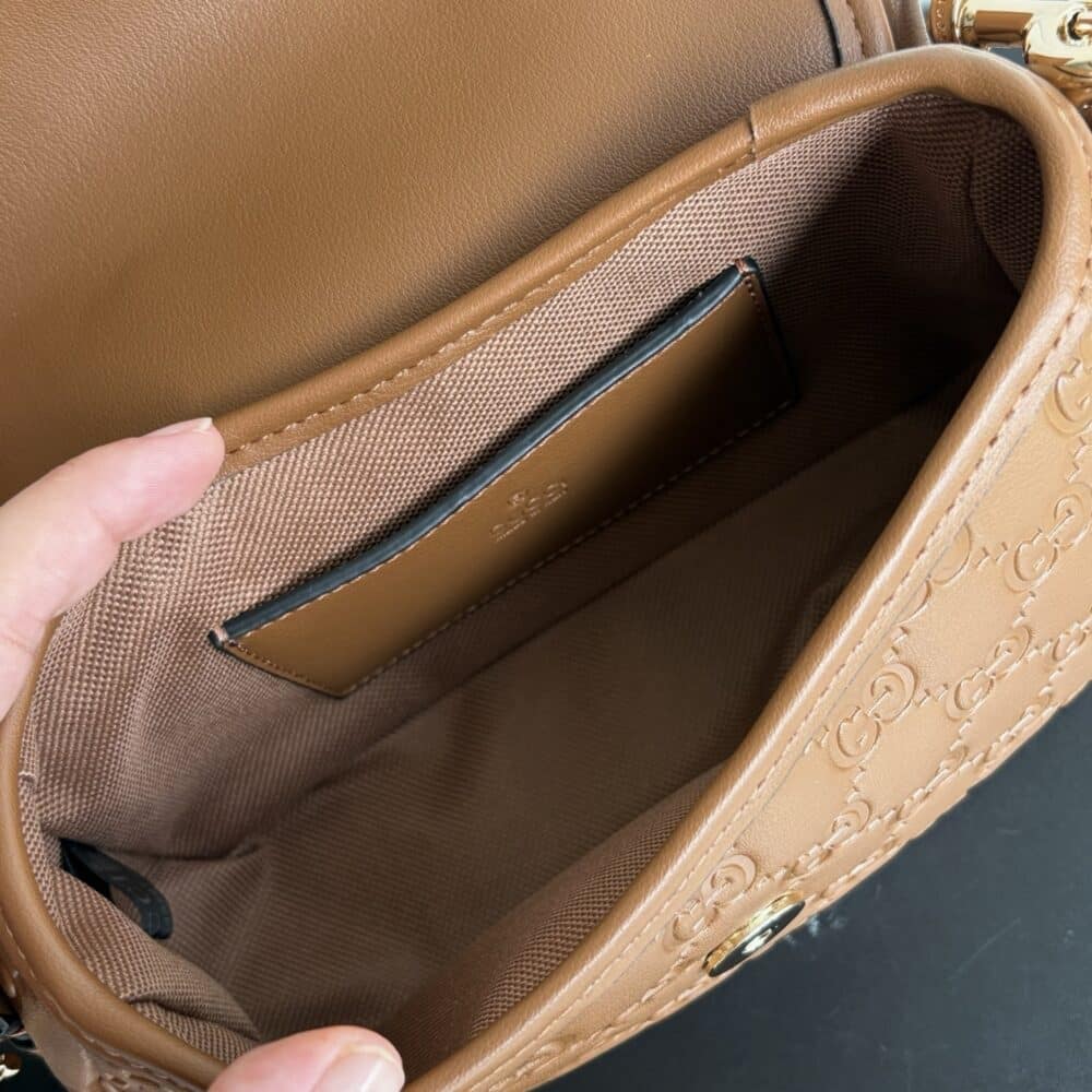 - Brown embossed GG leather