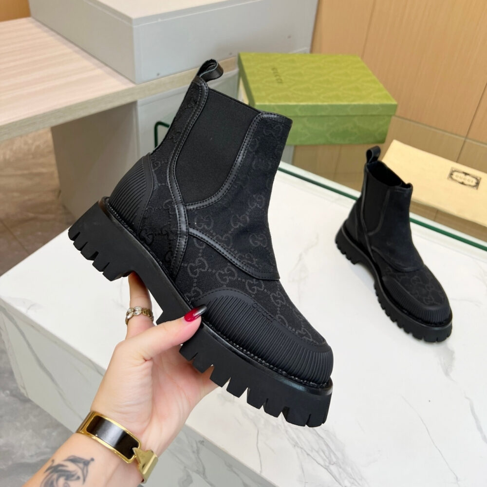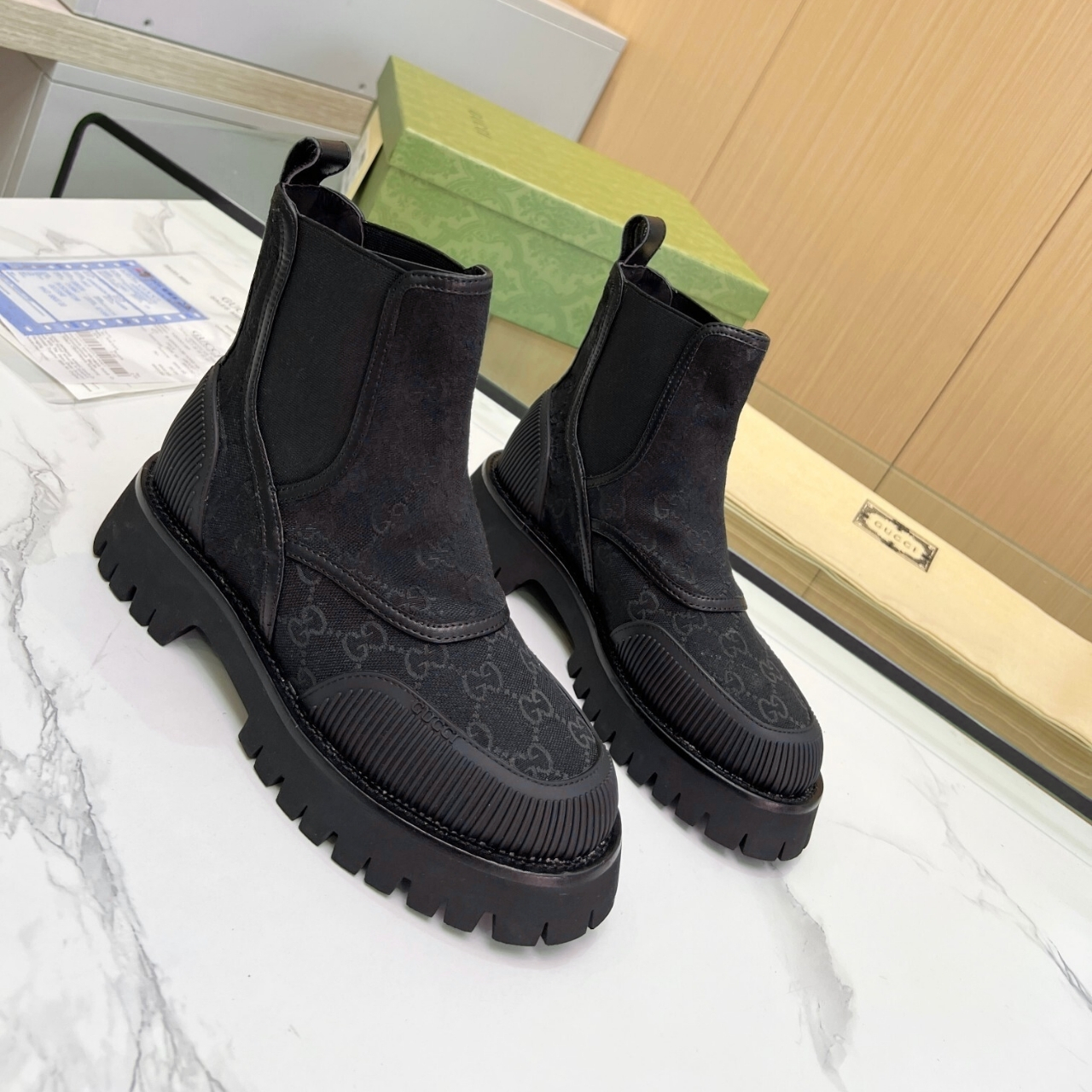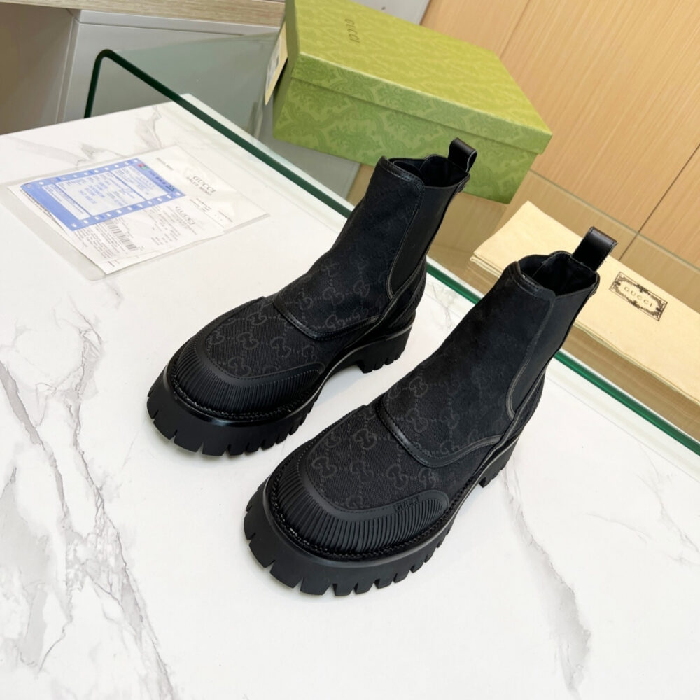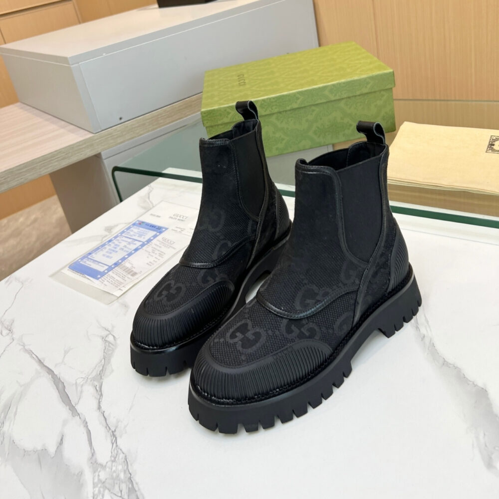 GUCCI GG JACQUARD CANVAS ANKLE BOOT TRIPLE BLACK 739777 FAB5I 1000