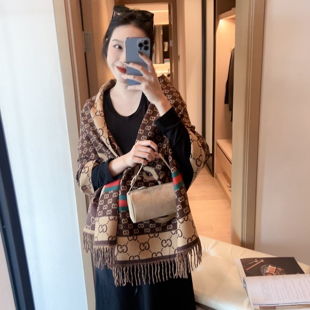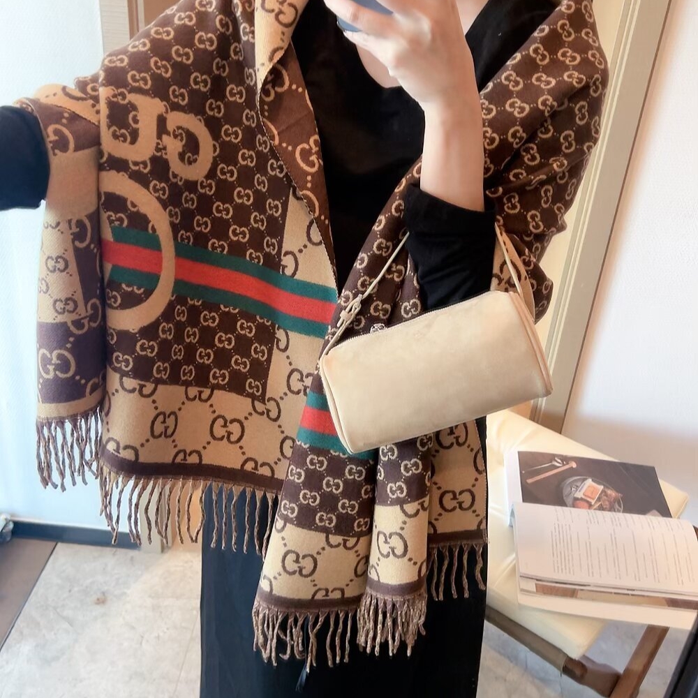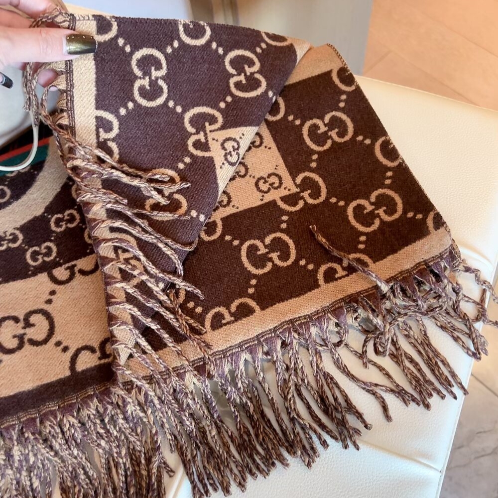 Gucci GG Jacquard Knitted Scarf Brown / 70.9 x 25.6 inches / Cozy Scarf / Elegant Style