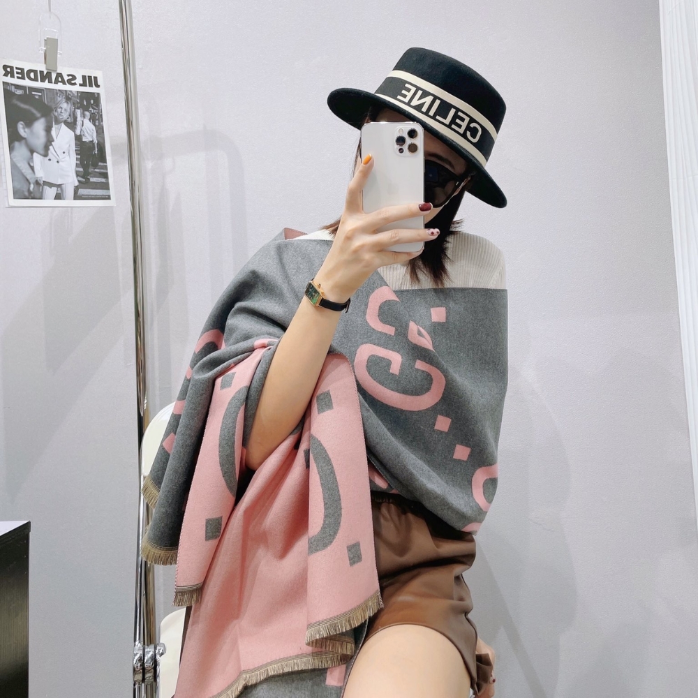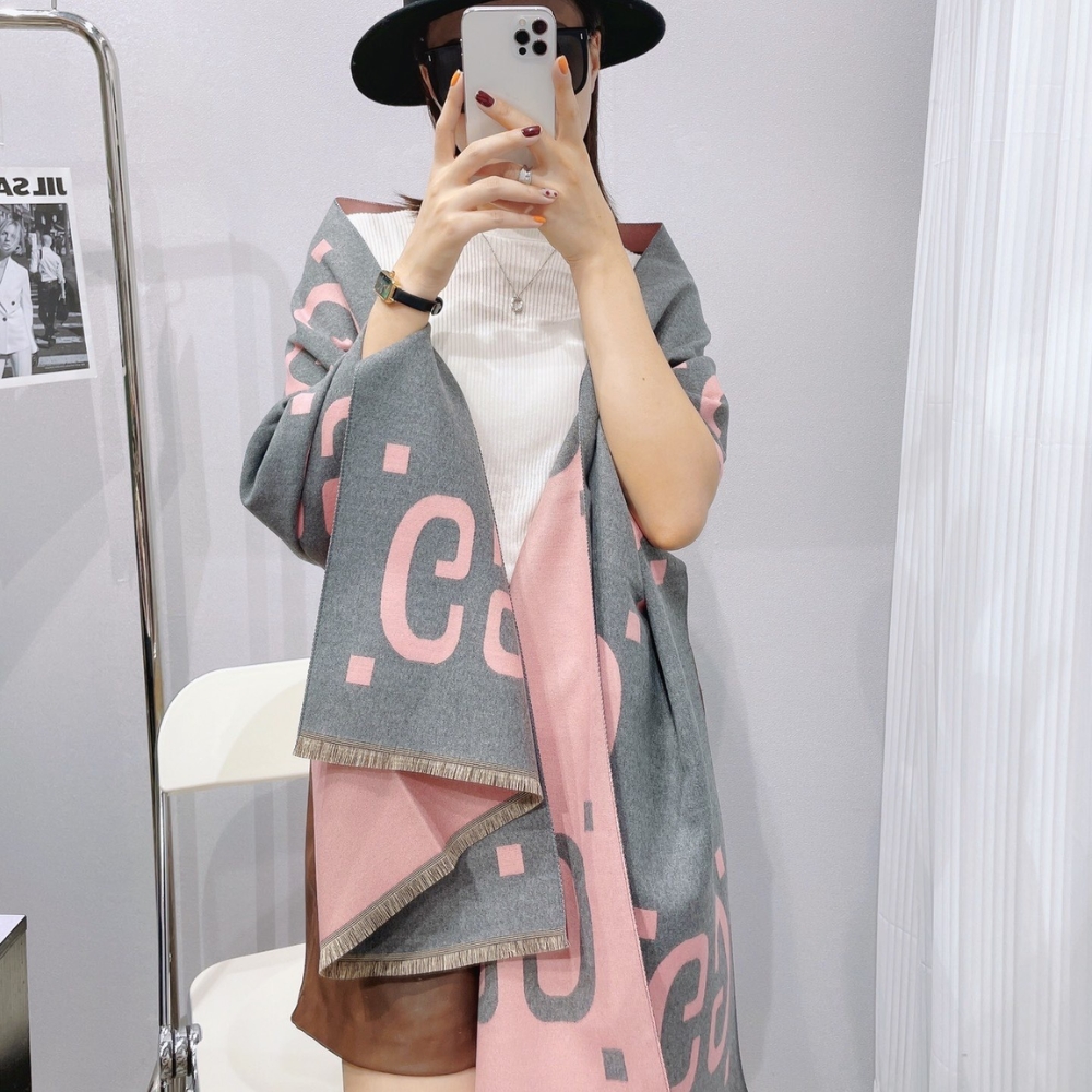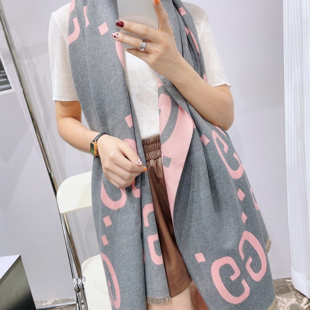 Gucci GG Jacquard Grey Pink / 70.9 x 27.6 inches / Wool Silk Scarf / Cozy Scarf