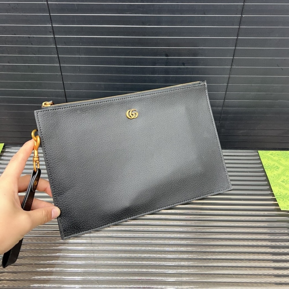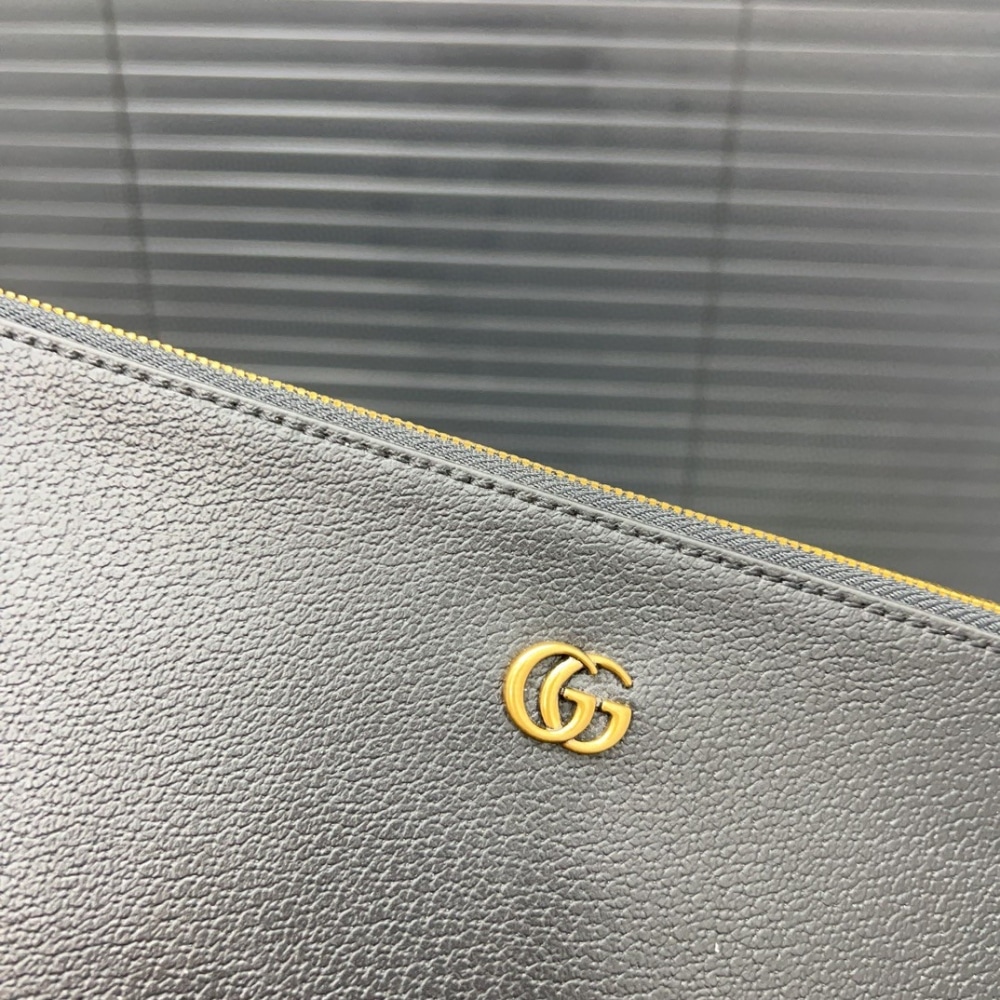 Gucci GG Leather Pouch Clutch Bag Black 29 cm / 11.4 inches