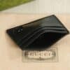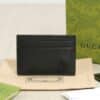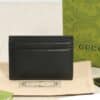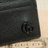 Complement smart and casual edits alike with the Marmont card case from the latest collection by Italian house Gucci. The minimalistic silhouette is crafted from leather with a moiré lining. This piece is given a stylish monochromatic finish with classic GG hardware in a tonal resin finish