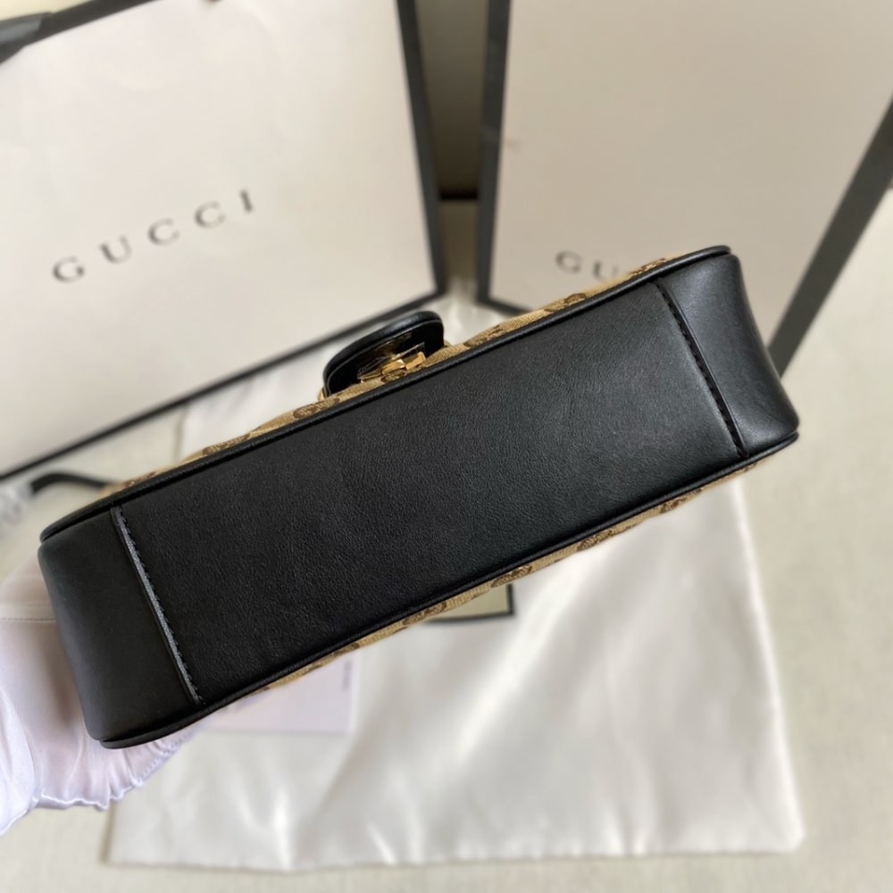 GUCCI GG MARMONT SHOULDER BAG BEIGE BLACK 26CM 443497 HVKEG 9772