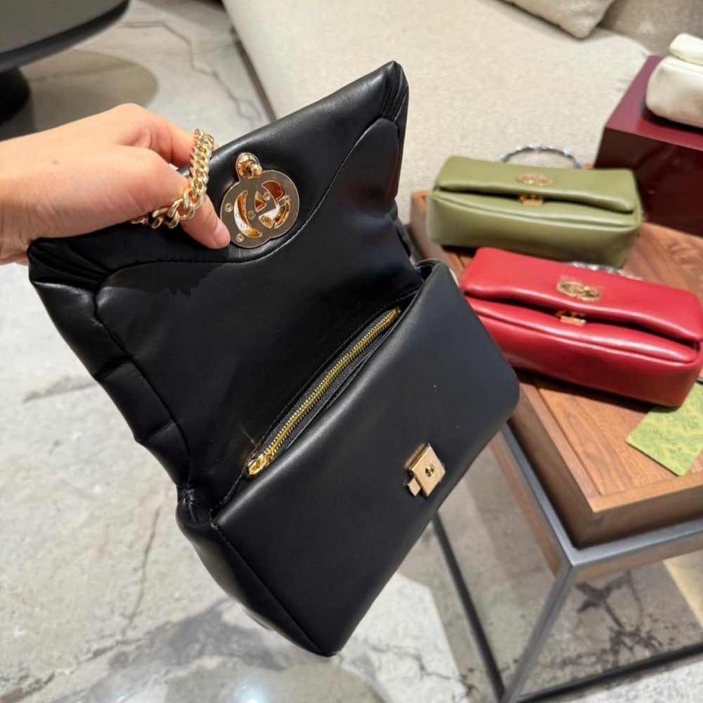 Gucci Gg Milano Mini Top Handle Bag Black Puffy Leather 806017 AAD5X 1000 21cm / 8.2 inches
