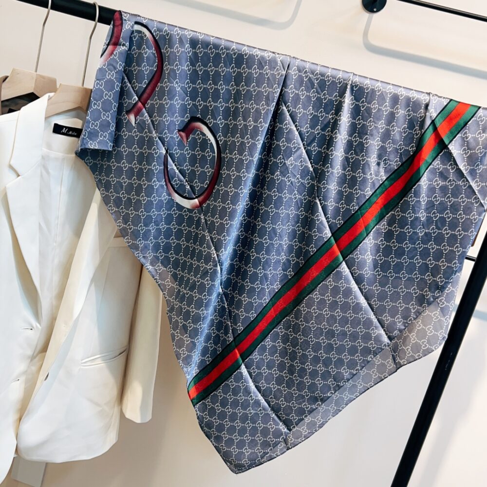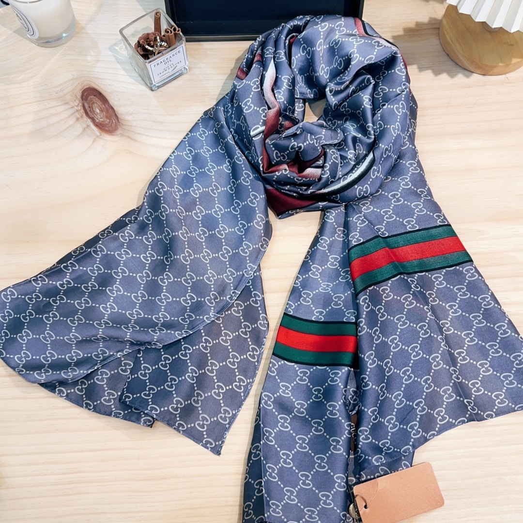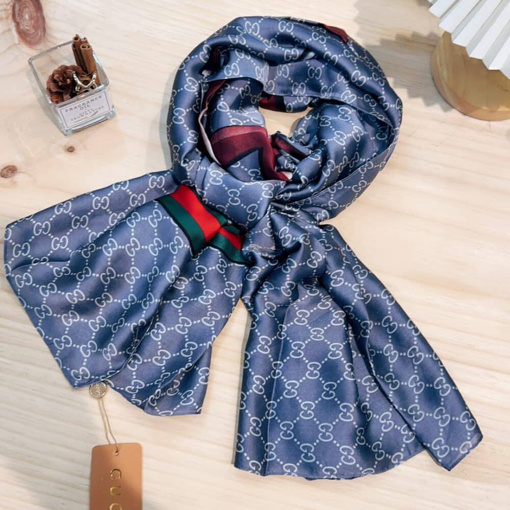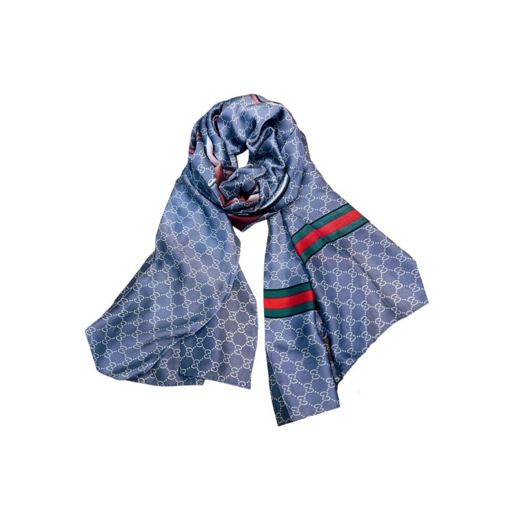 GUCCI GG NEUTRAL HOSEBIT SILK SCARF BLUE 90CM