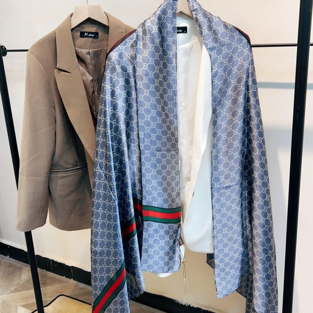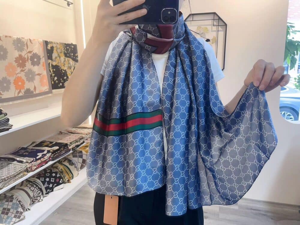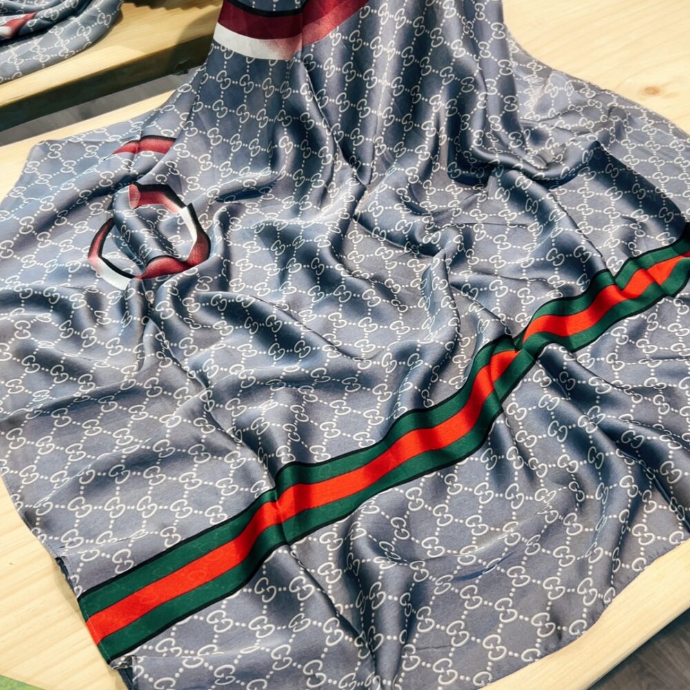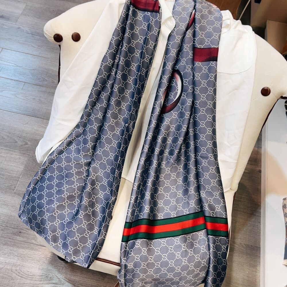GUCCI GG NEUTRAL HOSEBIT SILK SCARF BLUE 90CM