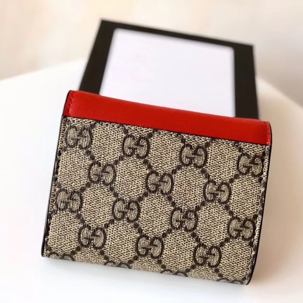 Gucci Gg Supreme/11.5cm Padlock Wallet Red And Beige 453355