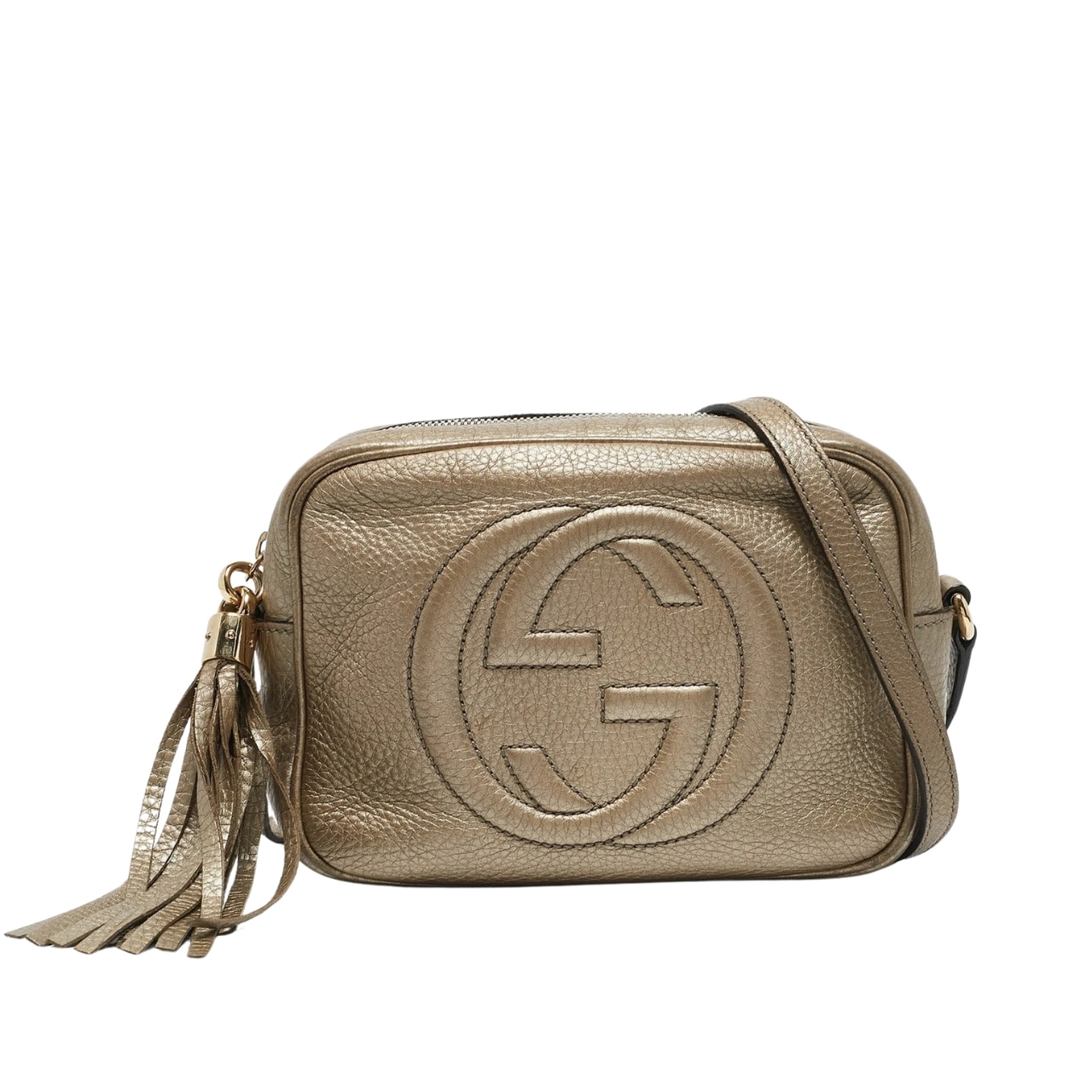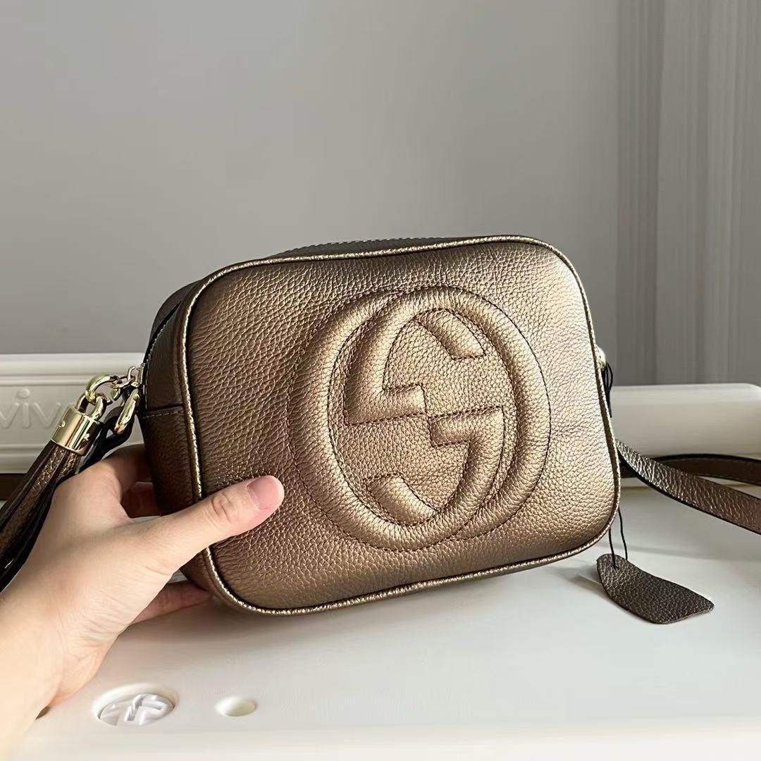 Gucci Metallic Leather Soho Disco Camera Crossbody Bag Brown 21Cm / 8.3 inches