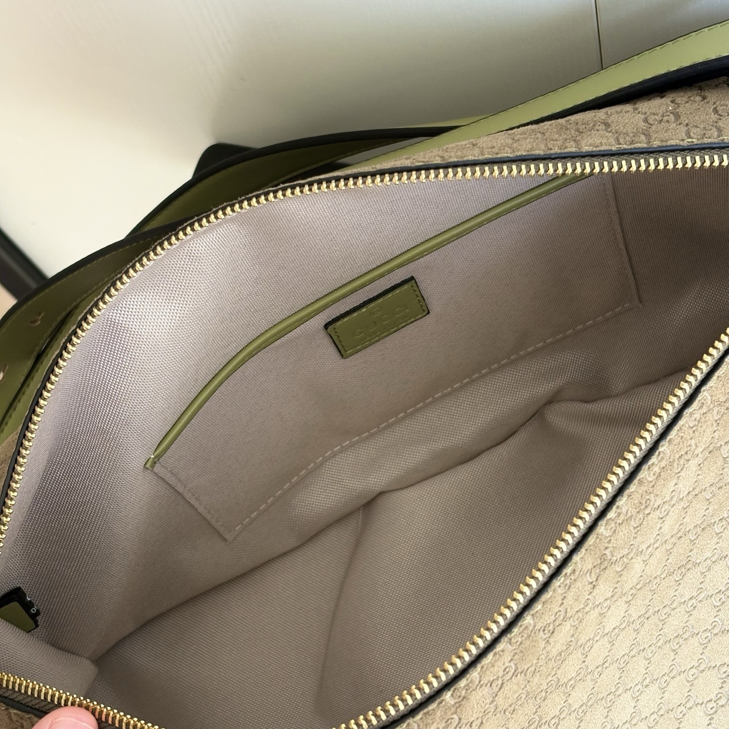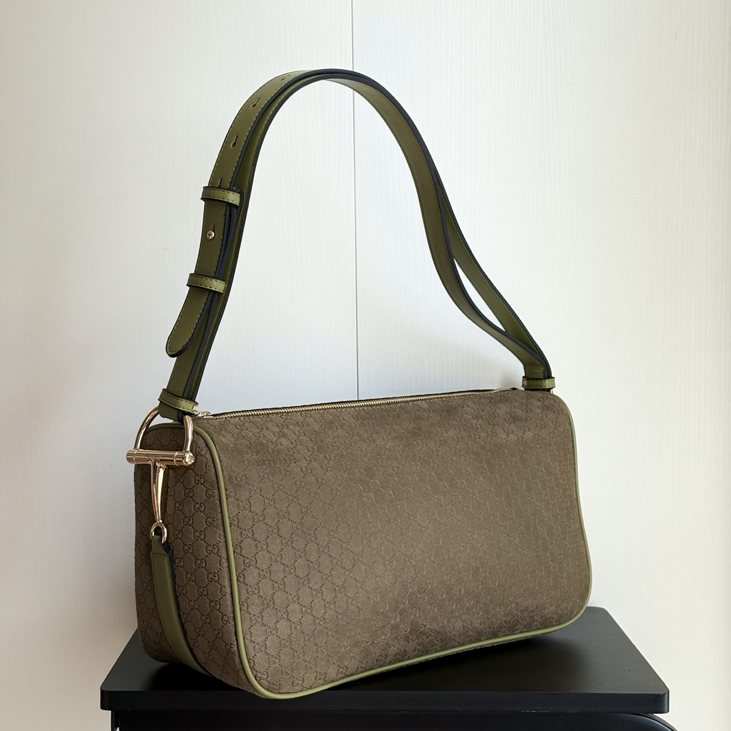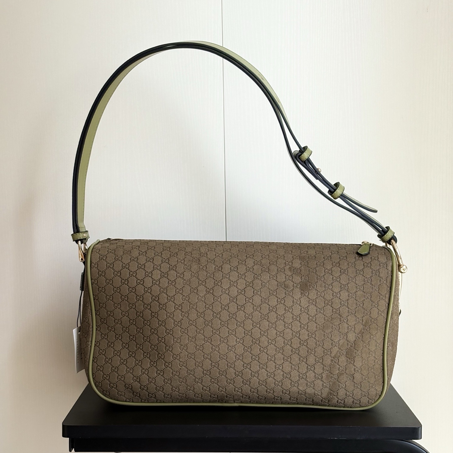 - Green embossed GG suede