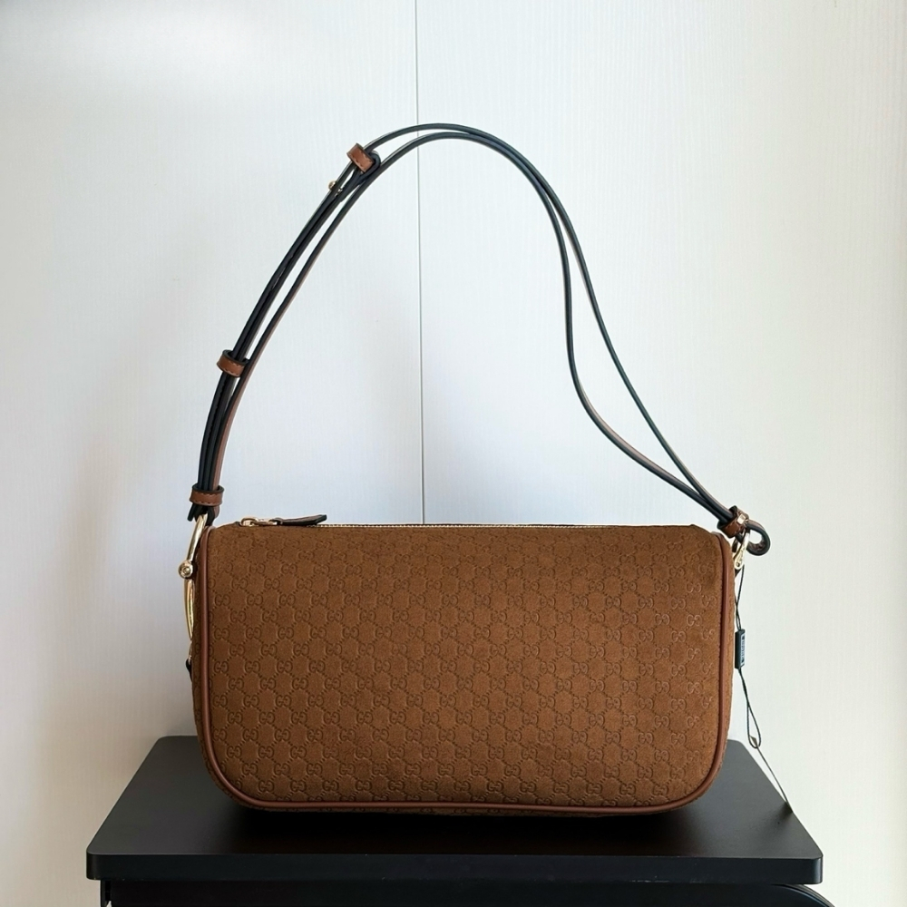 - Brown embossed GG suede