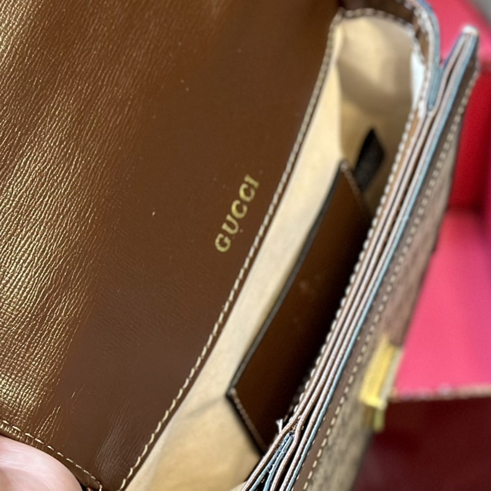 - Inside: 2 main compartments; 1 card slot