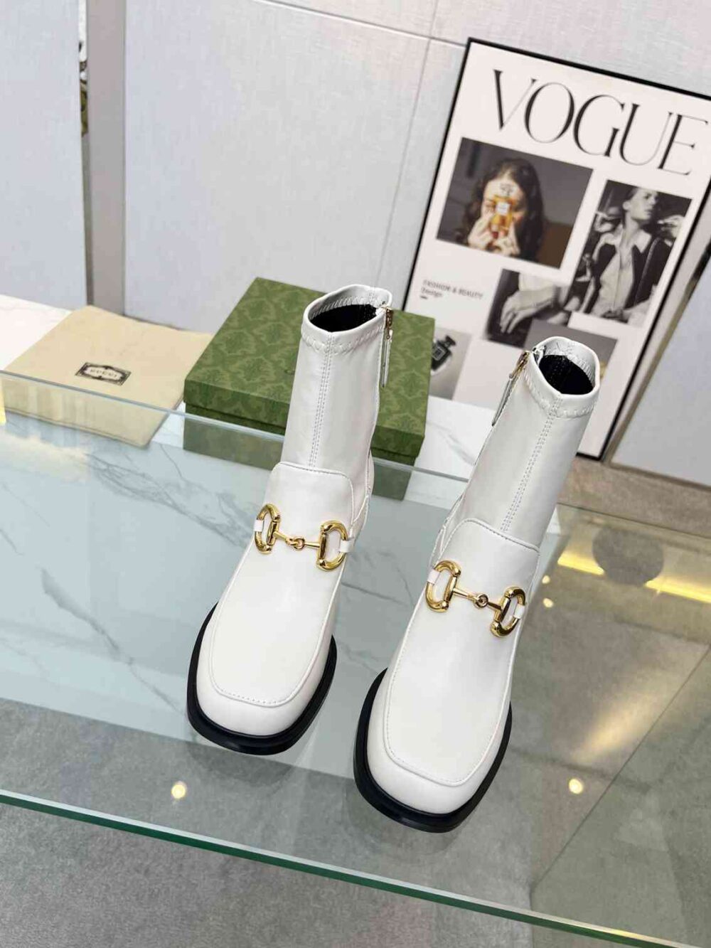 GUCCI HORSEBIT PLAQUE ANKLE BOOTS OFF WHITE