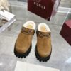 Gucci Horsebit Shearling Mules In Brown Suede