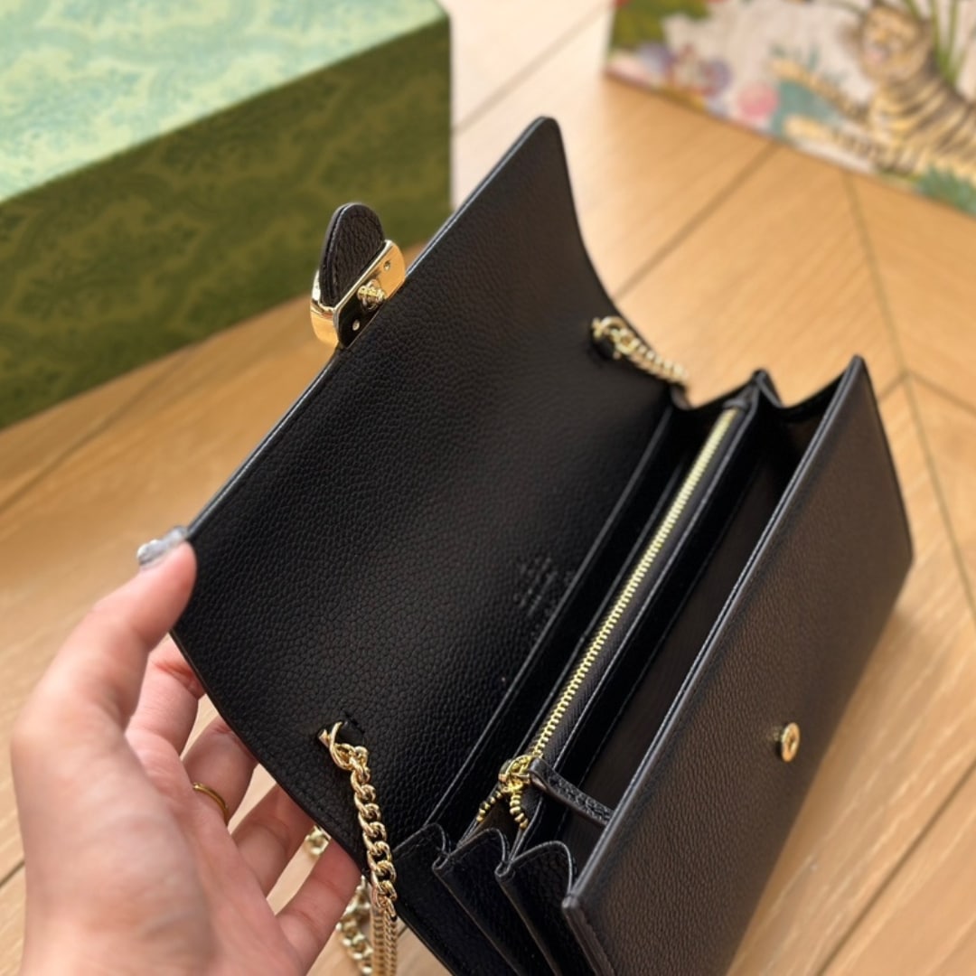 Gucci//Icon Gg Interlocking Wallet On Chain Crossbody Bag//Black//21cm//615523 CAO0G 1000