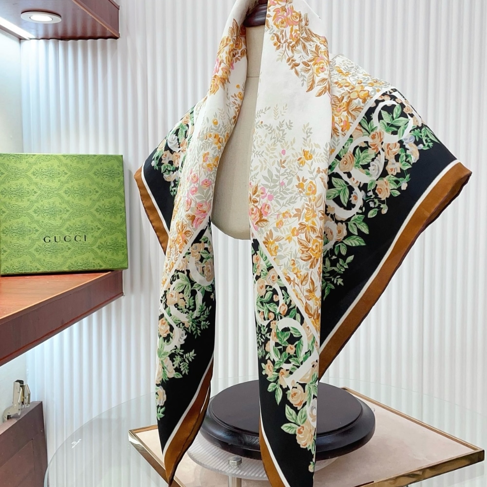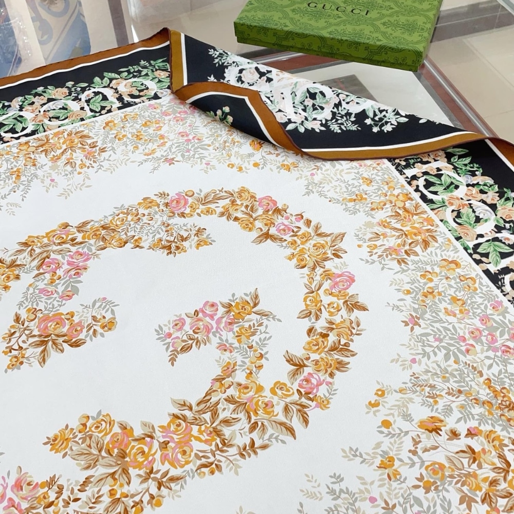 Gucci Interlocking G Floral Print Silk Carré Black And Beige 783157 3G001 1079