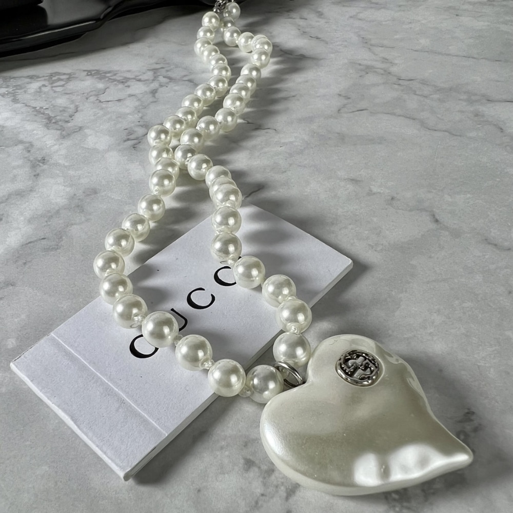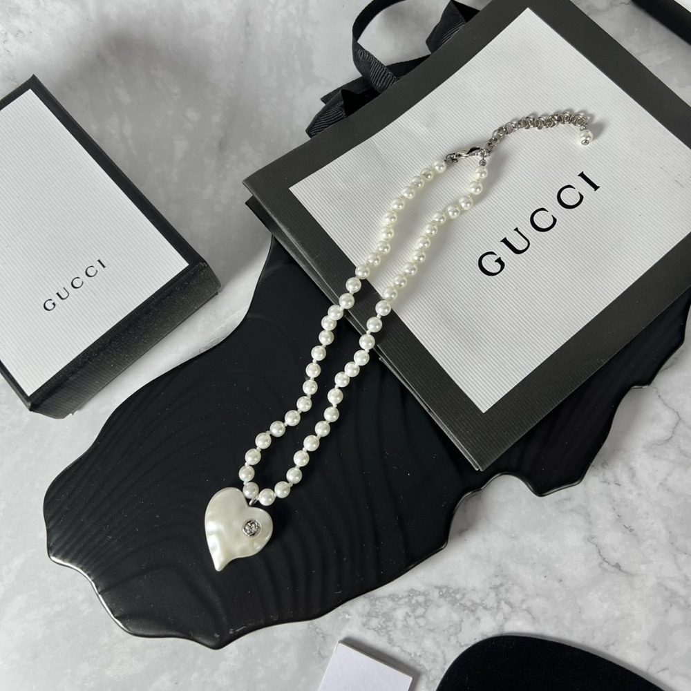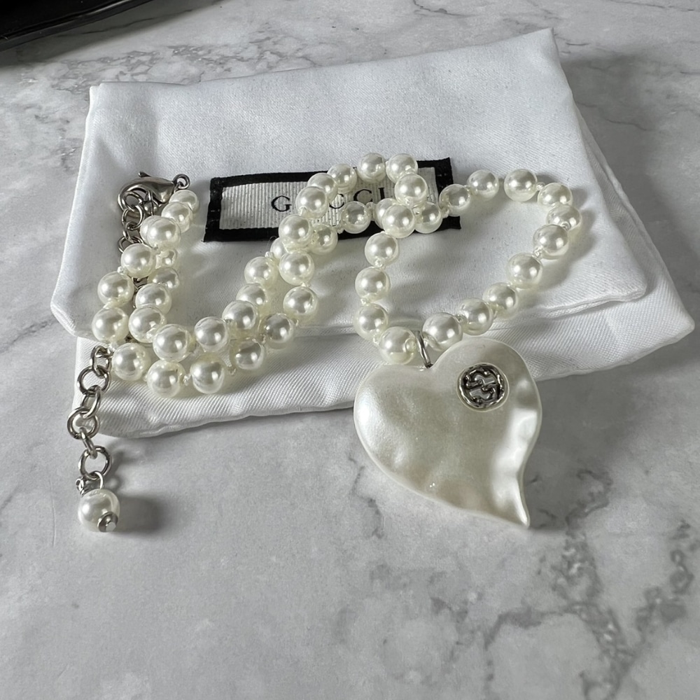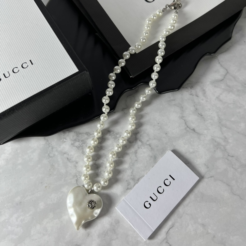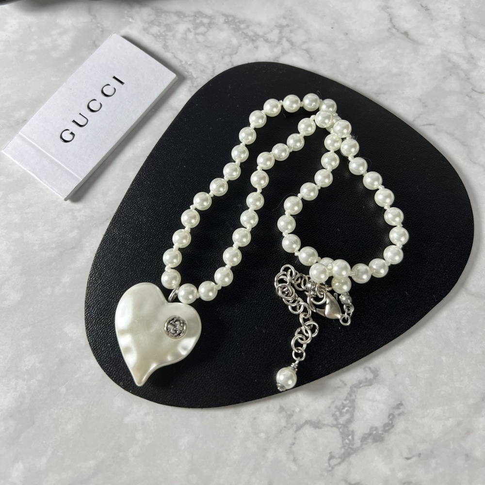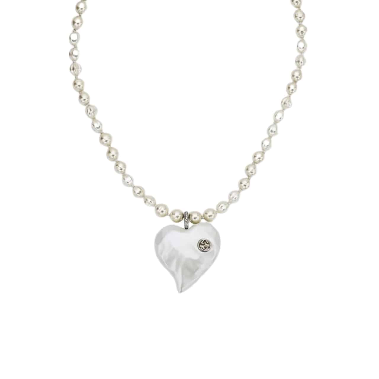Gucci Interlocking G Heart Necklace In Palladium Tone Metal