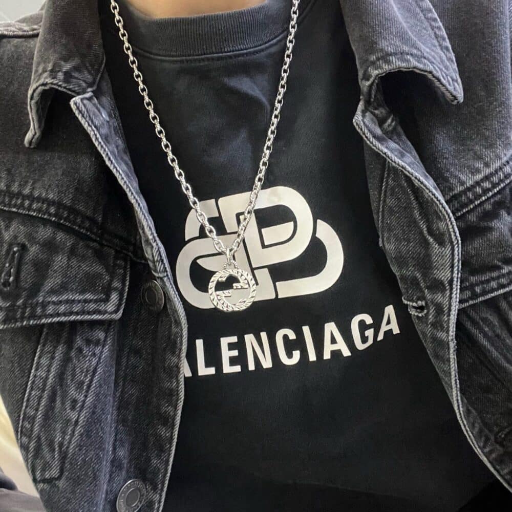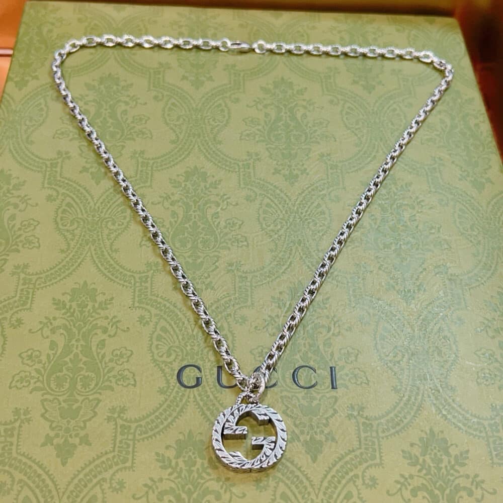 - A textured chain with interlocking G pendant