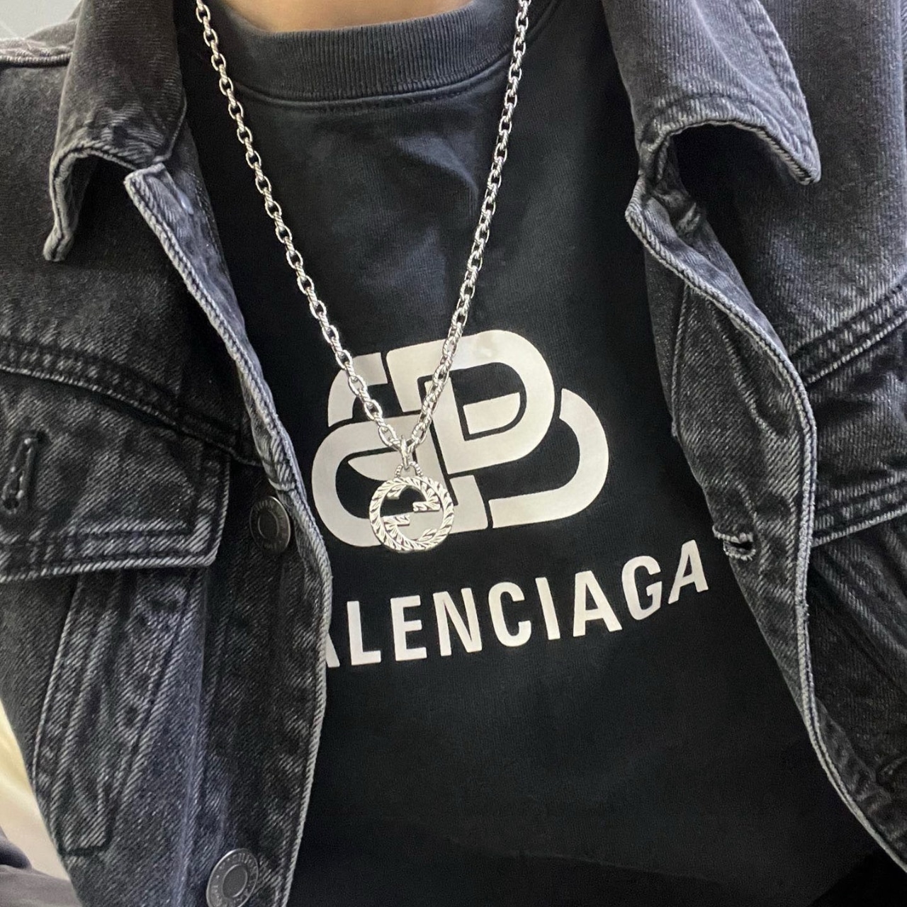 Gucci Interlocking Pendant Necklace Silver