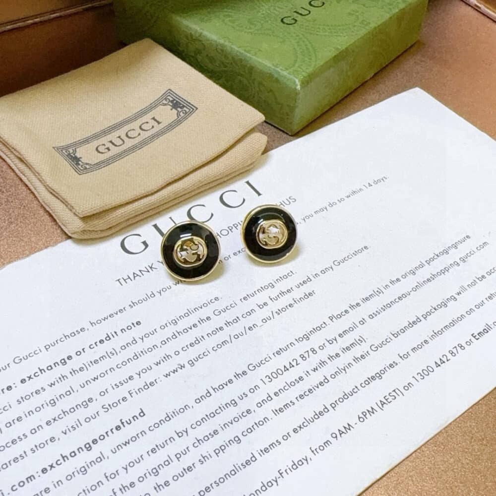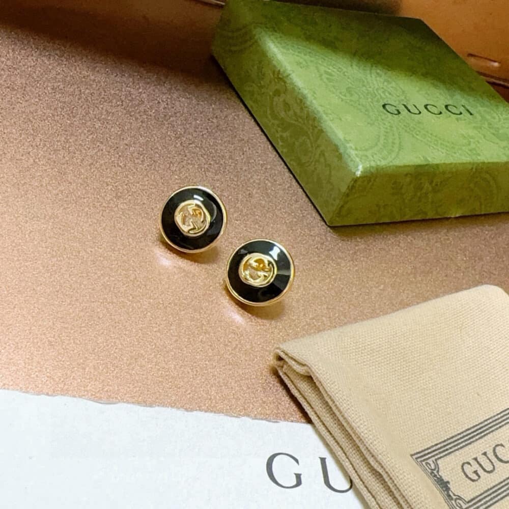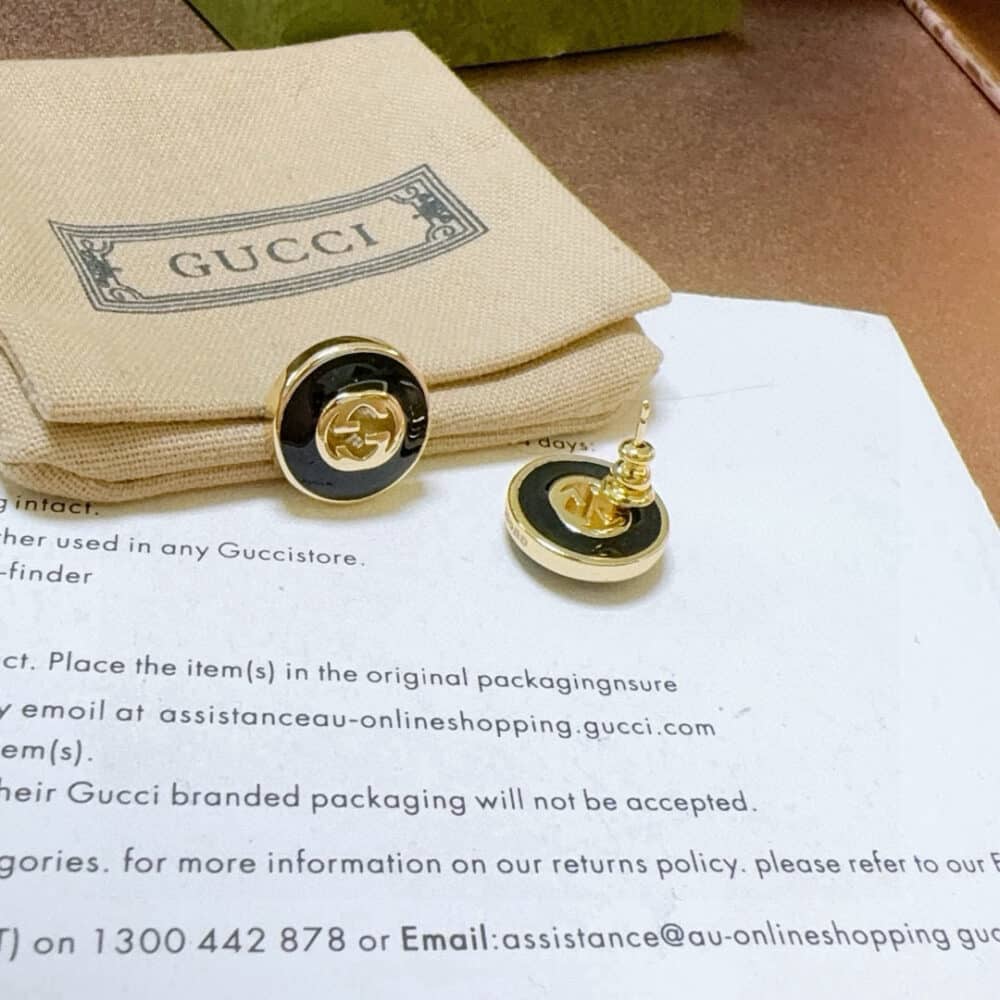 Gucci Interlocking 18k Stud Earrings Gold And Black