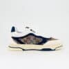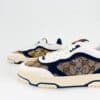 The Re-Web sees Gucci’s heritage stripes as a bold statement detail on a contemporary silhouette. Defined by signature details, this pair of trainers is crafted from beige and blue Original GG canvas and completed with green and red Web tongue.