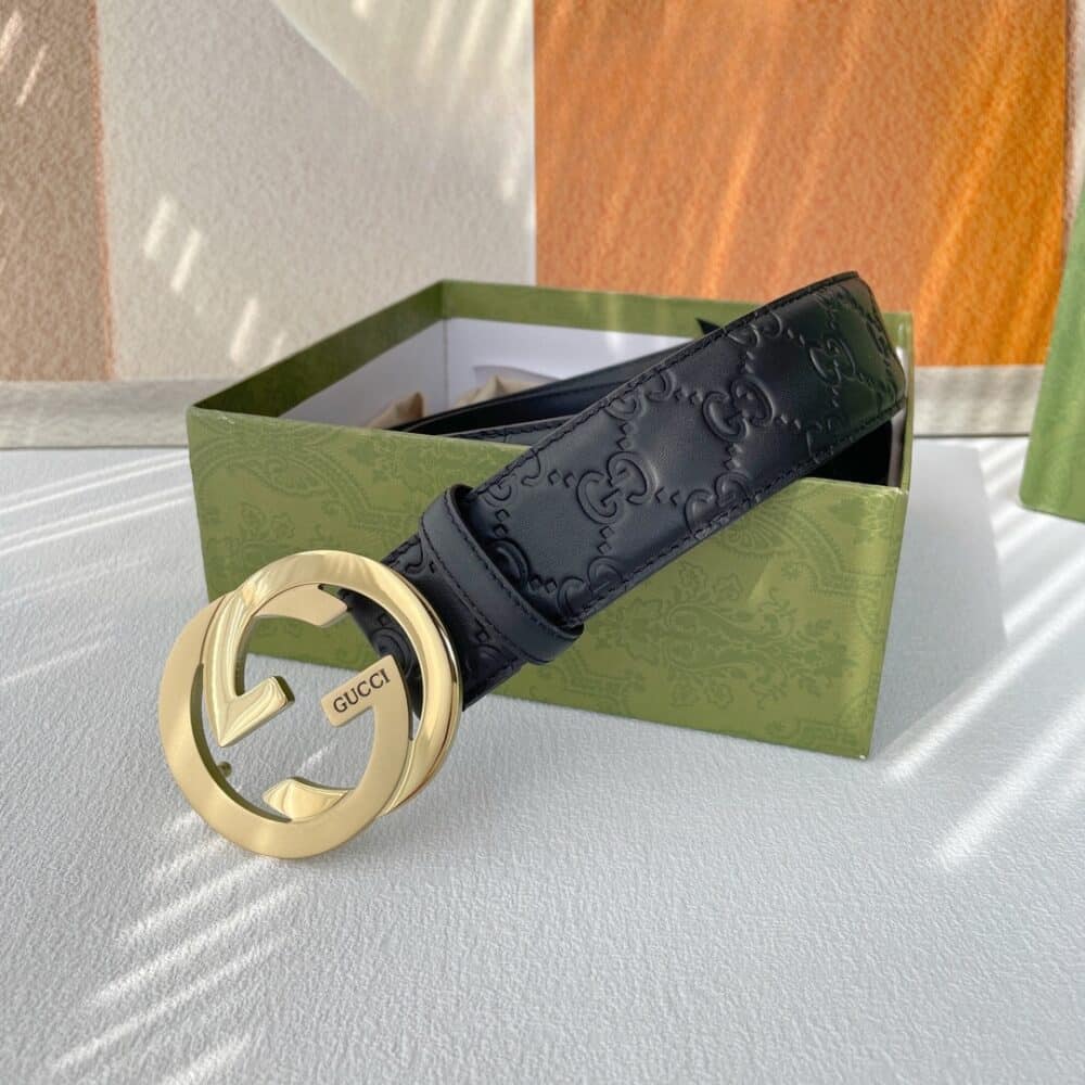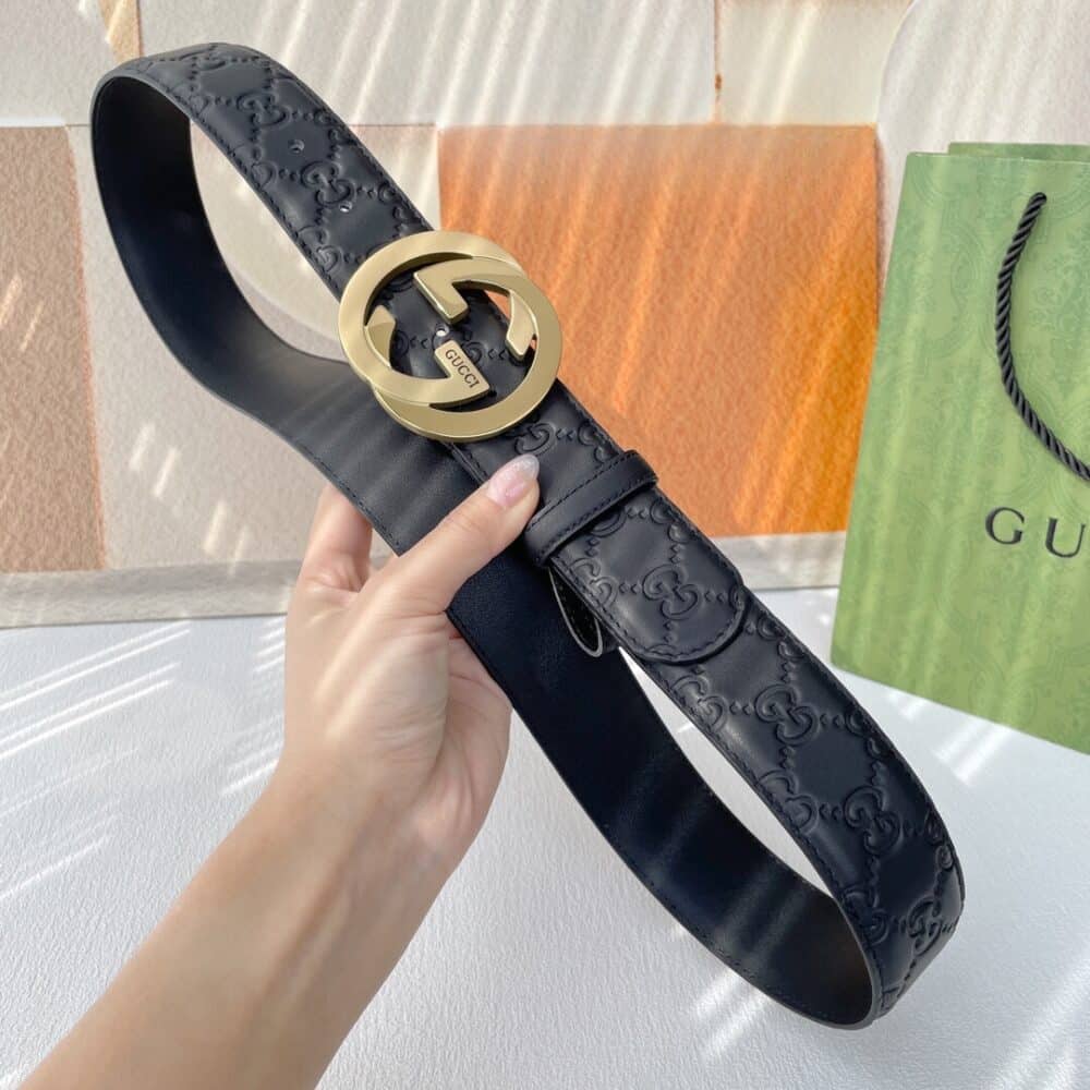 GUCCI MEN’S REVERSIBLE GG BELT GOLD HARDWARE BLACK 40MM