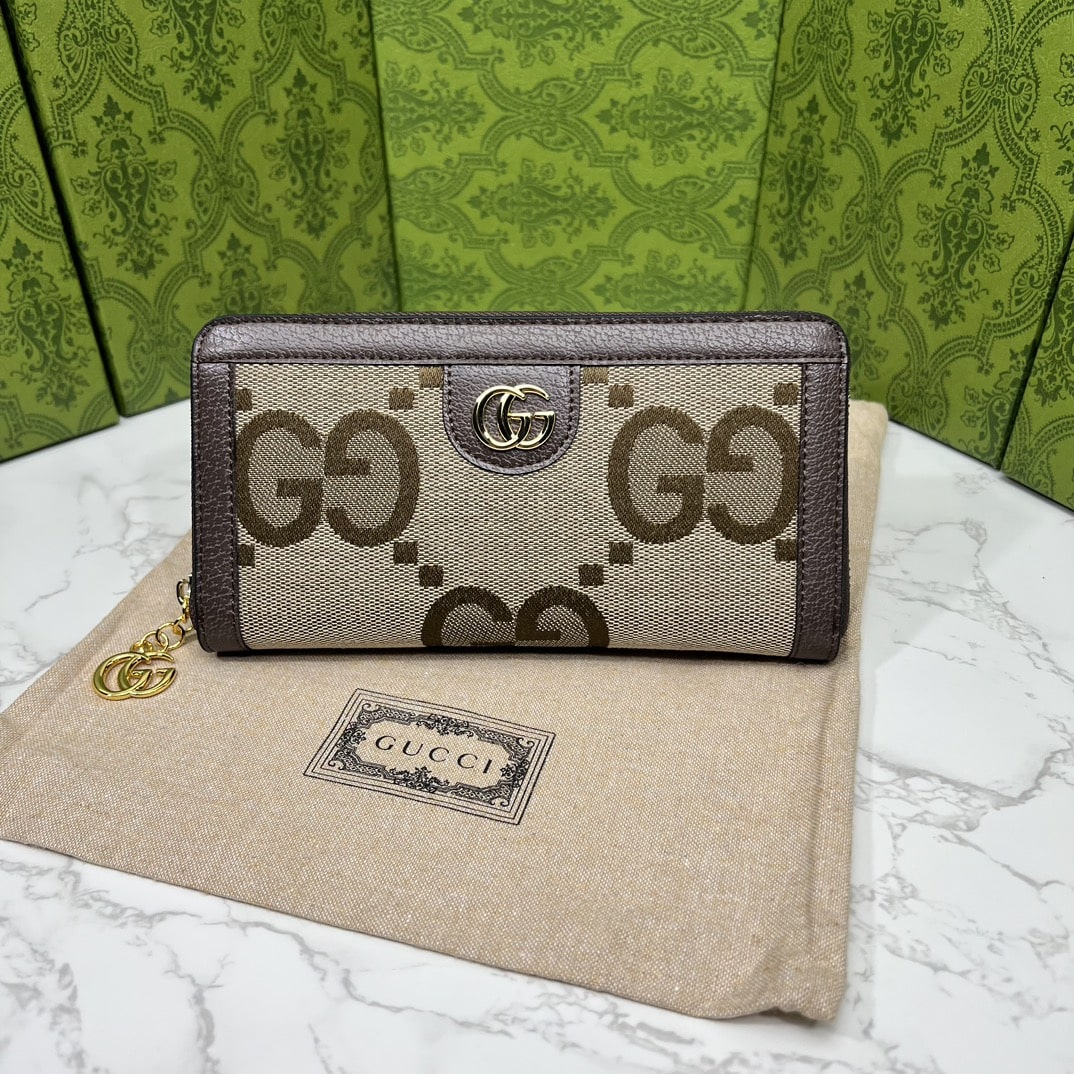 Gucci Monogram/19.5cm Canvas Long Wallet Dark brown