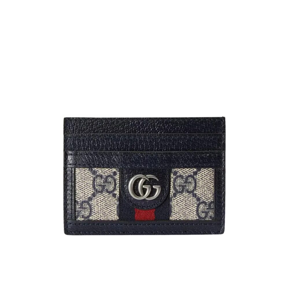 Gucci Ophidia GG Supreme Card Case Beige Blue 523159 96IWN 4076 / 9 cm / 3.5 inches