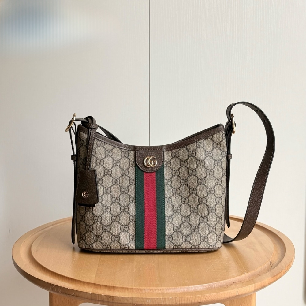 SUMMER SET: GUCCI OPHIDIA MINI TOTE BAG BEIGE AND EBONY 22CM & CANVAS BUCKET HAT WITH DOUBLE G BROWN