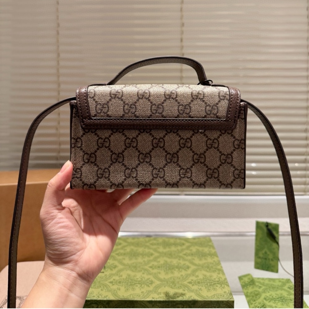 Gucci Ophidia Mini Top Handle Bag Beige And Ebony 772314 K9GSG 8367 / 18 cm / 7.1 inches