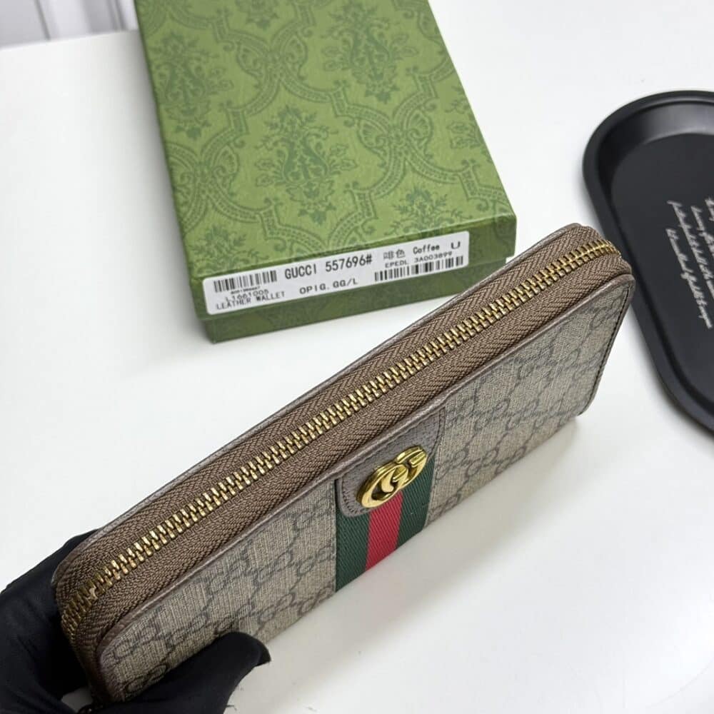 Gucci Ophidia Zip Around Wallet Brown 19Cm / 7.5 inches