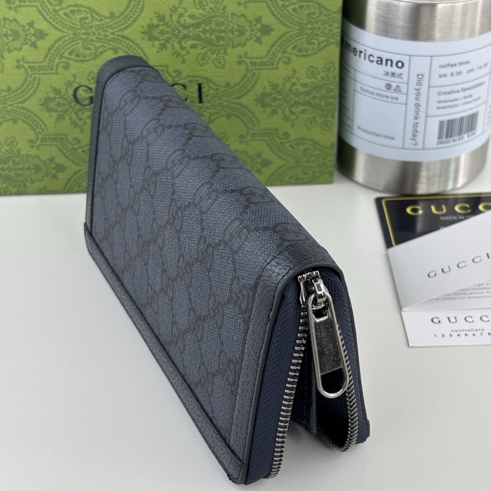 Gucci Ophidia Zip Around Wallet Dark Blue 19Cm / 7.5 inches