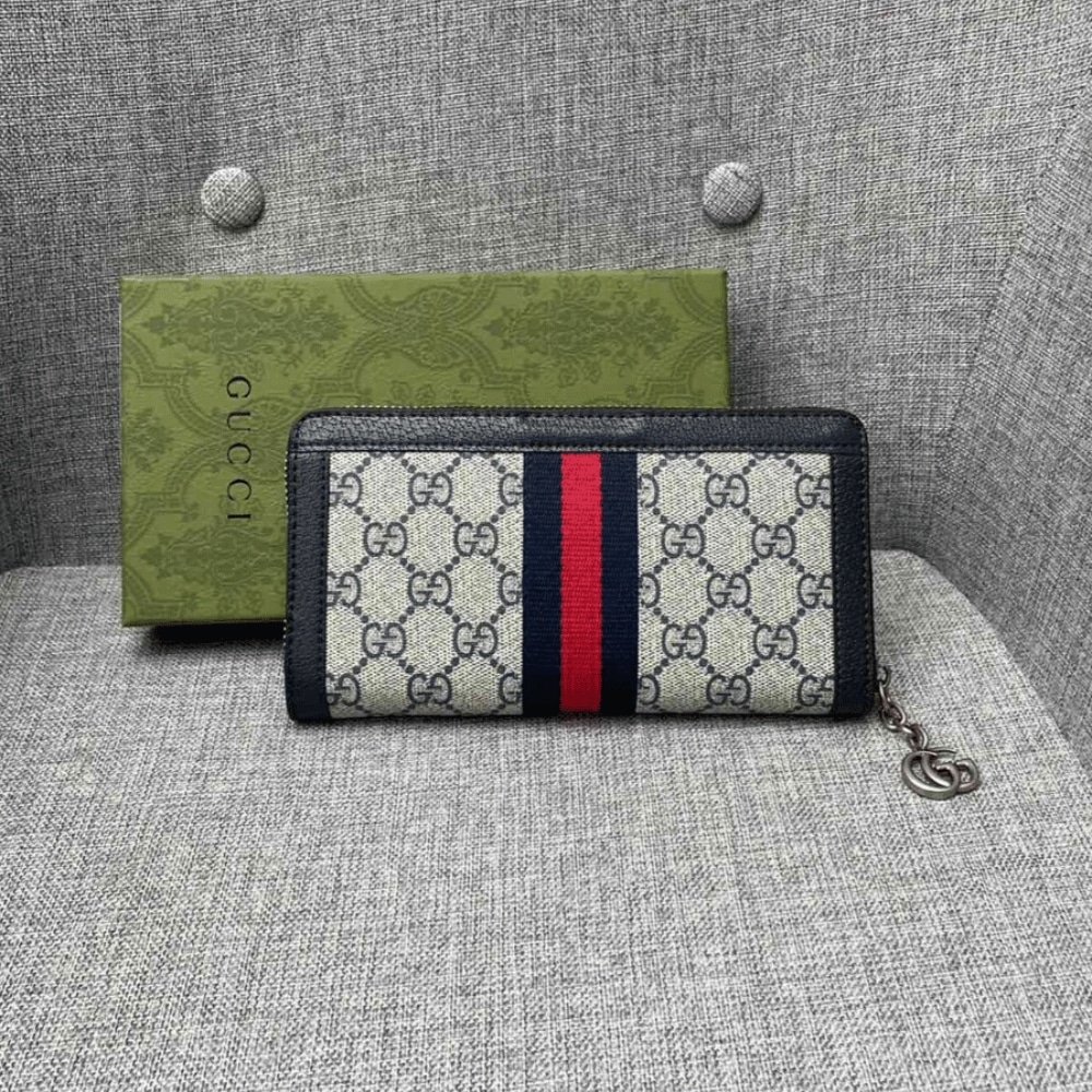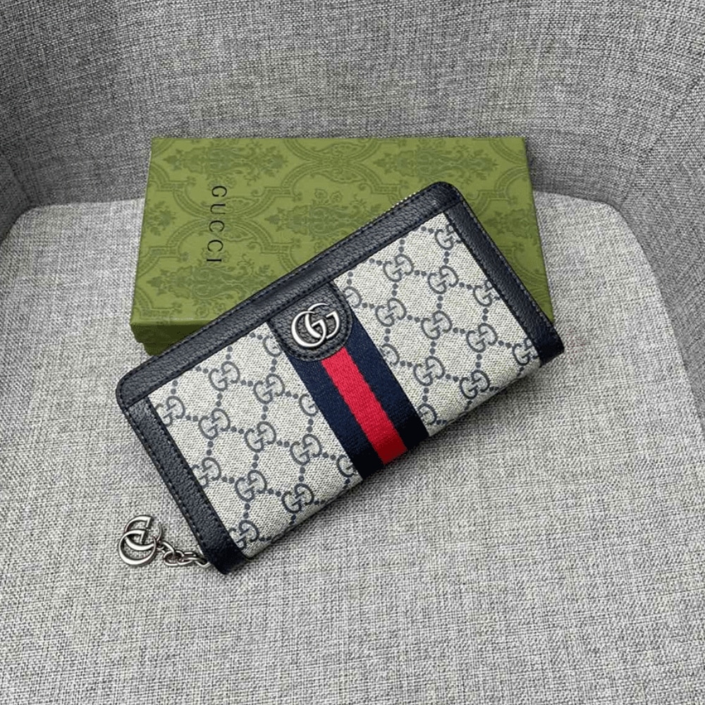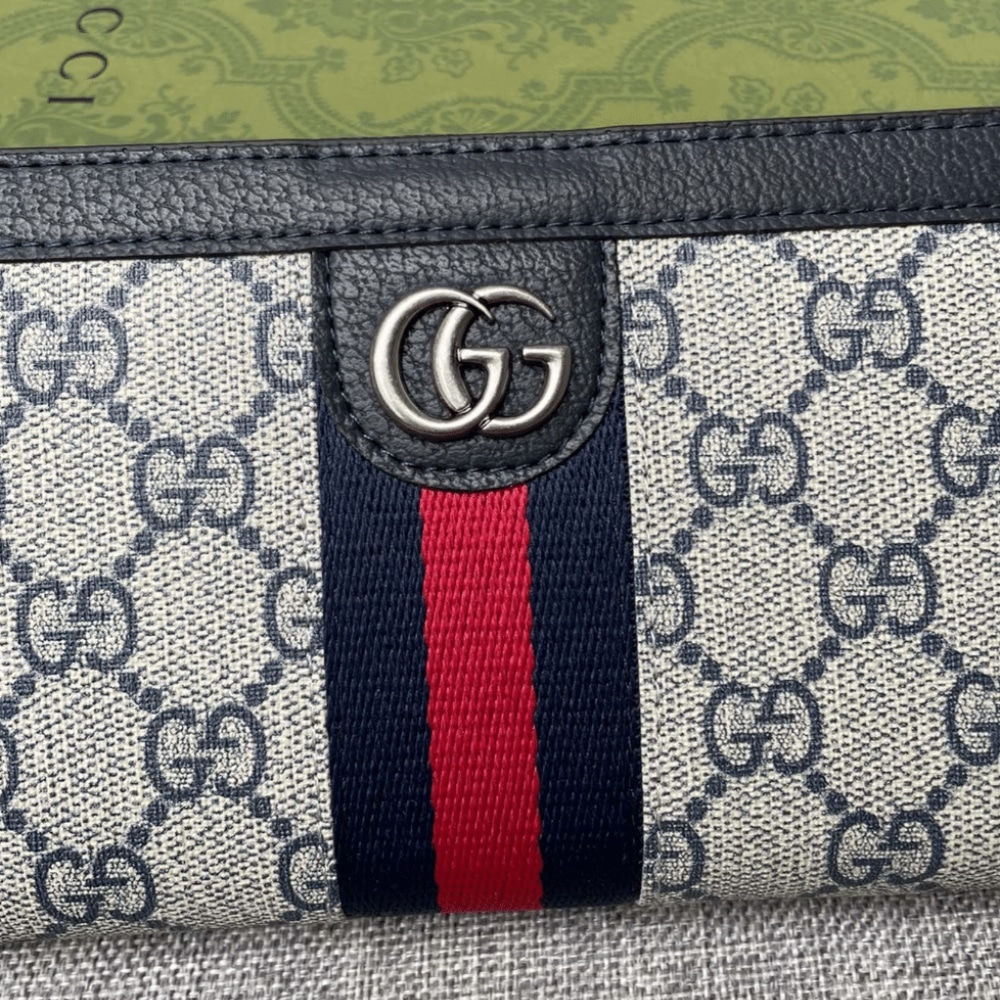 Gucci Ophidia Zip Around Wallet In Beige And Blue Supreme 523154 96IWN 4076 / 19.5 cm / 7.5 inches