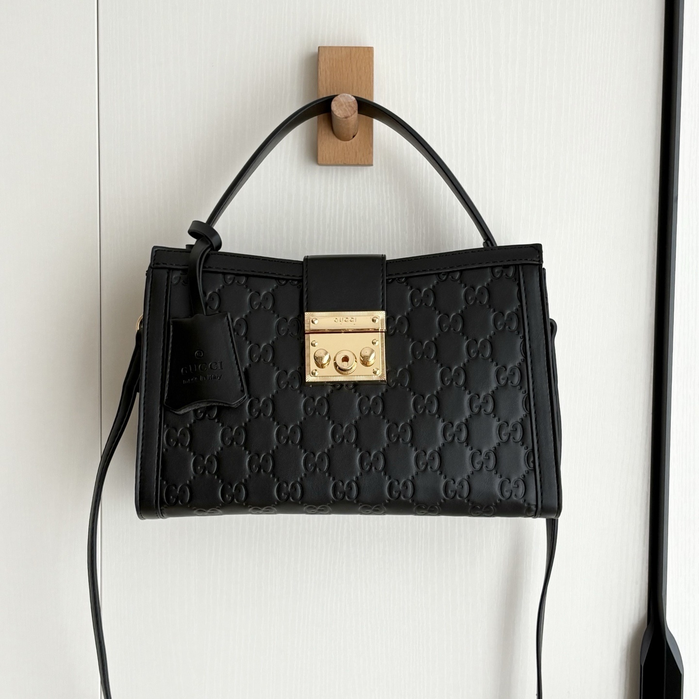 - Black embossed GG leather